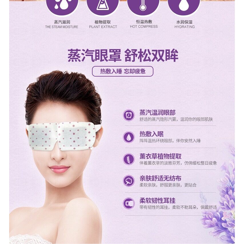 Горячая маска на глаза с экстрактом лаванды. Маска для глаз с вытяжкой из лаванды позволяет расслабиться, особенно если в течение дня ваши глаза находились в напряжении. Лаванда направлена на тонизирование и увлажнение тонкой и нежной кожи вокруг глаз. Нежный аромат лаванды успокаивает и позволяет полноценно расслабиться. Преимущества маски для глаз BioAqua с лавандой: 1. Удобная упаковка. Индивидуальная оболочка для каждой маски. 2. Эффективность. Результат заметен уже после первого применения. 3. Сочетание косметического эффекта с ароматерапией. Маска разогревается после вскрытия упаковки. Максимальная температура - 40 градусов и в течение 10 минут маска будет оставаться нагретой. В ходе этого времени маска будет не только греть кожу, расслабляя ее, но и отдавать ей свои питательные вещества. Повышение упругости кожи, а также интенсивных эффект лифтинга будет заметен через 4-6 процедур. Кроме подтягивания кожи можно также отметить осветление темных кругов под глазами и разглаживание мимических морщин. Метод использования: очистите кожу от макияжа и загрязнений, достаньте маску и оденьте ее дужки на уши. Прилягте и находитесь в горизонтальном положении в течении всего времени, пока не остынет маска. После промокните салфеткой излишки средства и нанесите сыворотку или крем для век. Хранить в темном, прохладном месте. Беречь от детей. ООО «Европейская косметика», г. Гуанчжоу Адрес: г. Гуанчжоу, Байюньский район, пригород Жэньхэ, Деревня Дасян, Седьмой экономический кооператив (девятое деление), улица Бэй, здание № 2. Лицензия на производство косметики: Провинция Гуандун, косметика 20160694 Действующий стандарт: GB/T2660 Номер партии и срок годности продукции: указан на упаковке Произведено: г. Гуанчжоу, Китай.