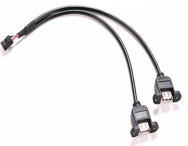 Кабель 2 USB A - USB 2.0 10-pin (M), оснащен 5-контактным разъемом для подключения материнской платы на одном конце и USB-портом для монтажа на панели на другом, обеспечивая простой и удобный доступ к порту USB 2.0 на розетке для монтажа на панели. USB-кабель для монтажа в панель предлагает удобное решение для подключения загрузочных флэш-накопителей или дополнительных устройств аутентификации и т. Д. К USB-соединению материнской платы.