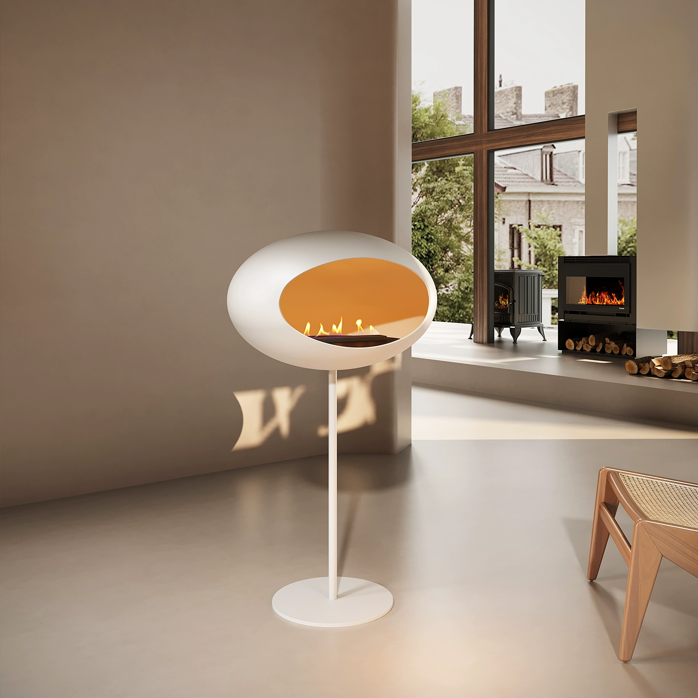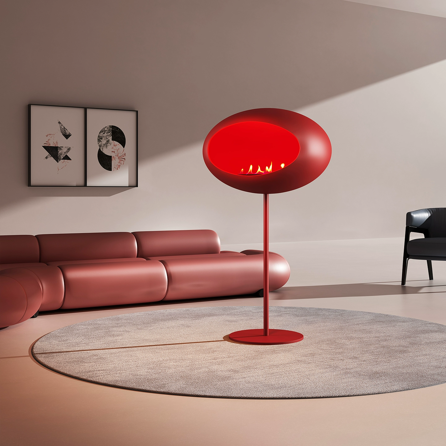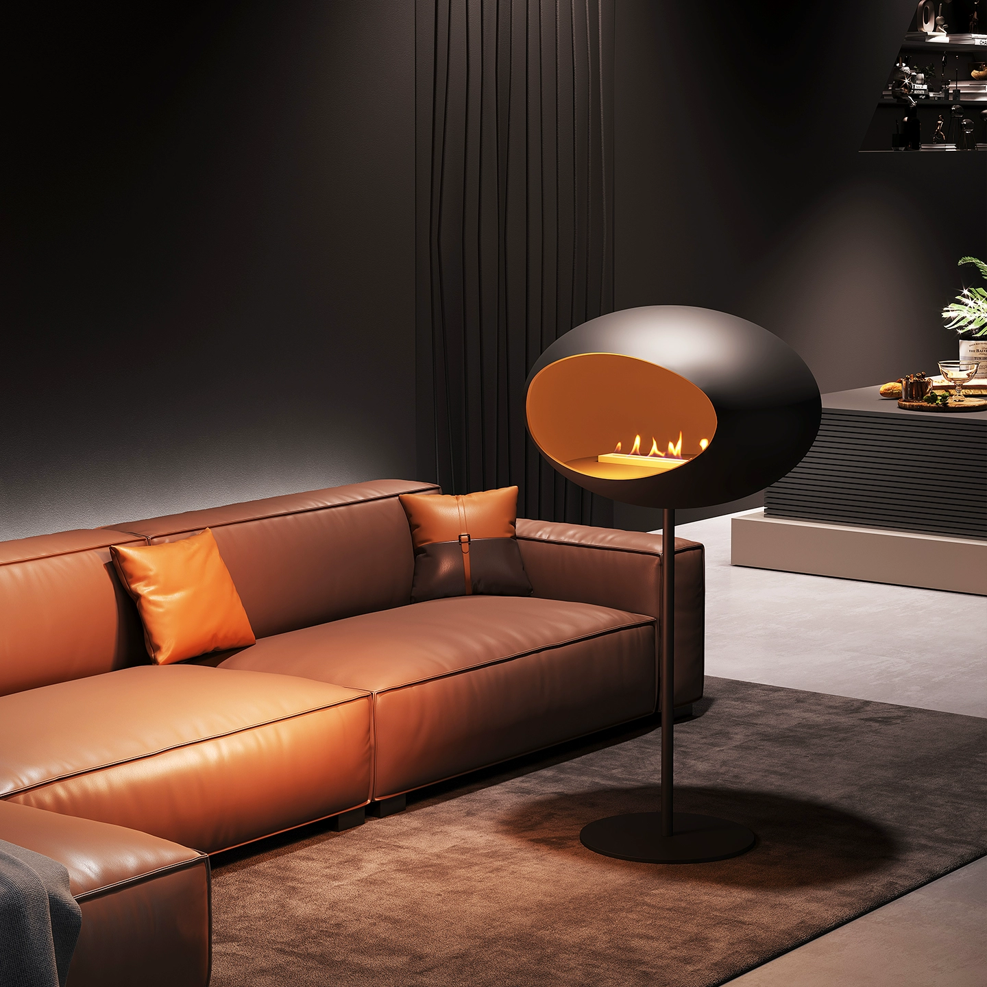 Камин с живым огнем, черный, диаметр 80 см