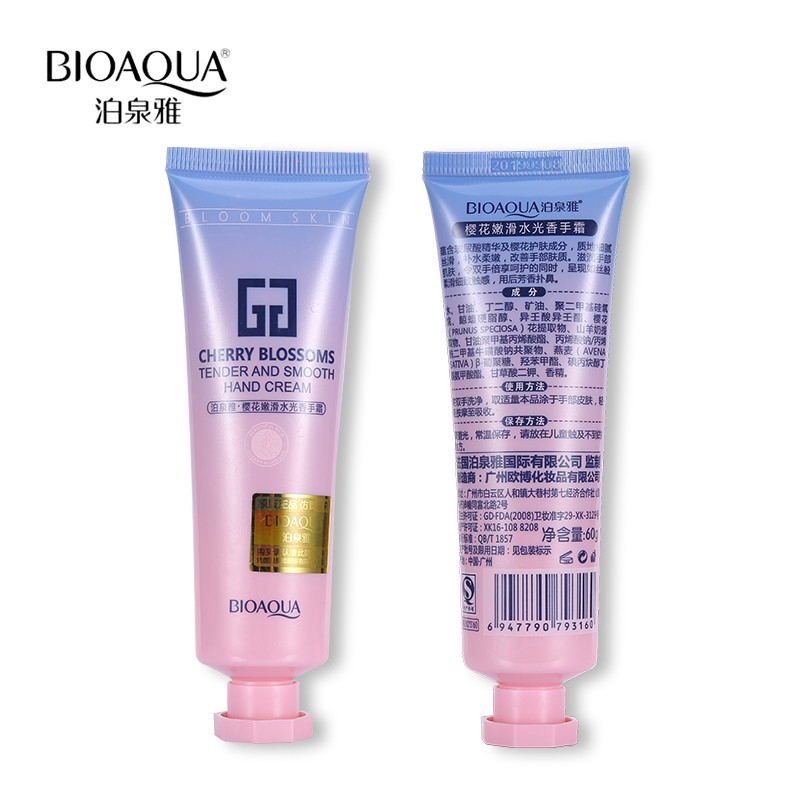 Крем для рук с экстрактом цветущей сакуры Bioaqua Крем содержит экстракт лепестков сакуры, издавна известный как источник молодости. Природные компоненты крема интенсивно воздействуют на кожу рук, питая и восстанавливая ее. Кожа рук станет меньше шелушиться и раздражаться. Крем не оставляет после применения неприятного эффекта жирных рук или, наоборот, стянутой кожи. Данное средство подойдет для любого типа кожи, подстраиваясь под ее проблемы и потребности. Метод использования: крем следует наносить на чистую и подсушенную кожу рук. Используйте средство по мере возникновения ощущения сухости рук, а также после использования агрессивных моющих средств. Хранить в прохладном месте, избегая попадания прямых солнечных лучей. Не использовать после истечения срока годности. ООО «Европейская косметика», г. Гуанчжоу Адрес: г. Гуанчжоу, Байюньский район, пригород Жэньхэ, Деревня Дасян, Седьмой экономический кооператив (девятое деление), улица Бэй, здание № 2. Лицензия на производство косметики: Провинция Гуандун, косметика 20170506 Действующий стандарт: GB/Т 1857 Номер партии и срок годности продукции: указан на упаковке Произведено: г. Гуанчжоу, Китай.