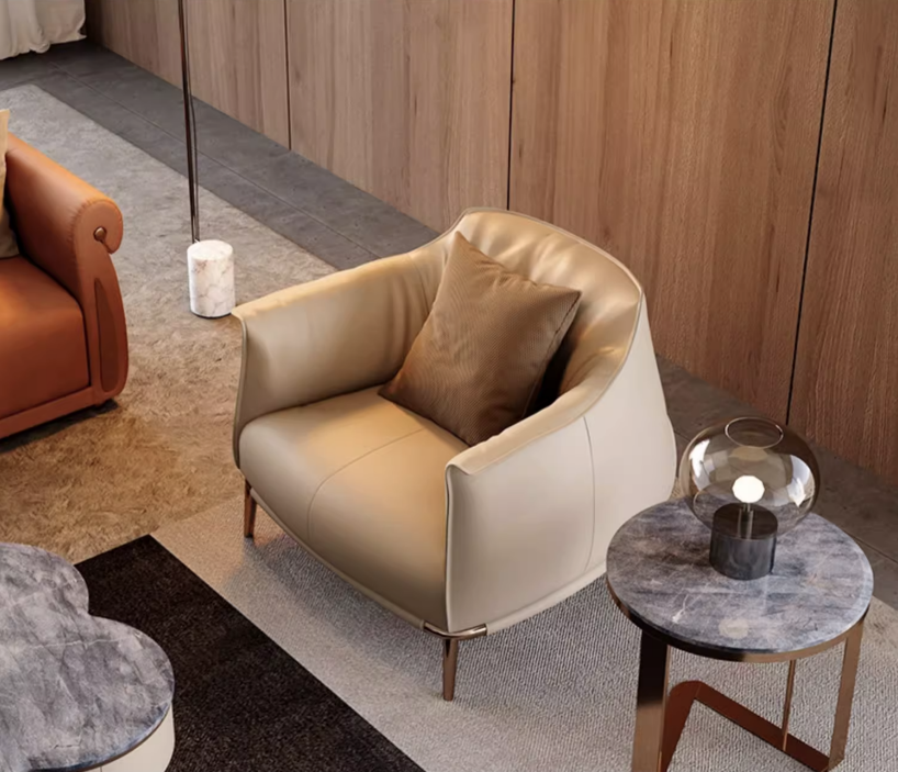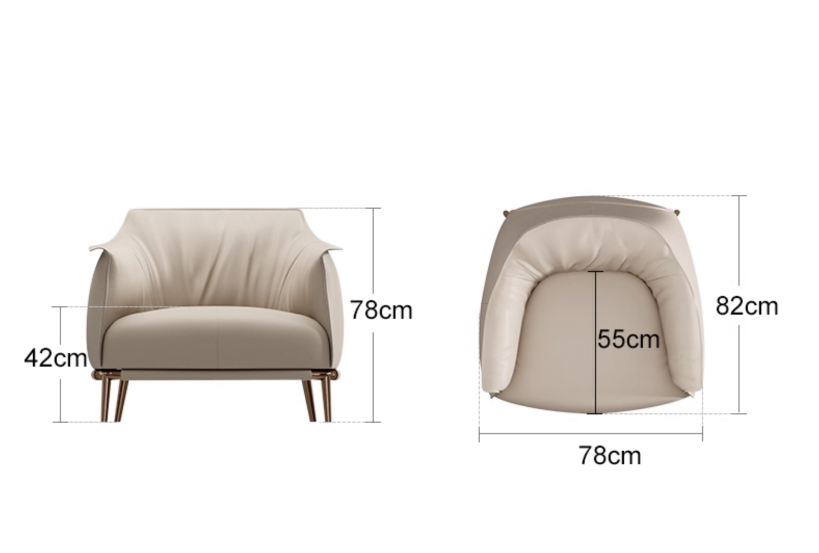 Кресло кожа Witki, 78*82*78 см, молочный, не раскладной, итальянский стиль