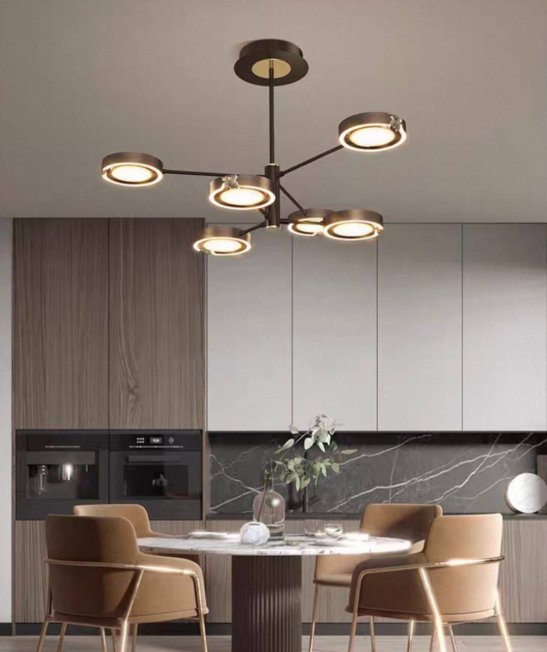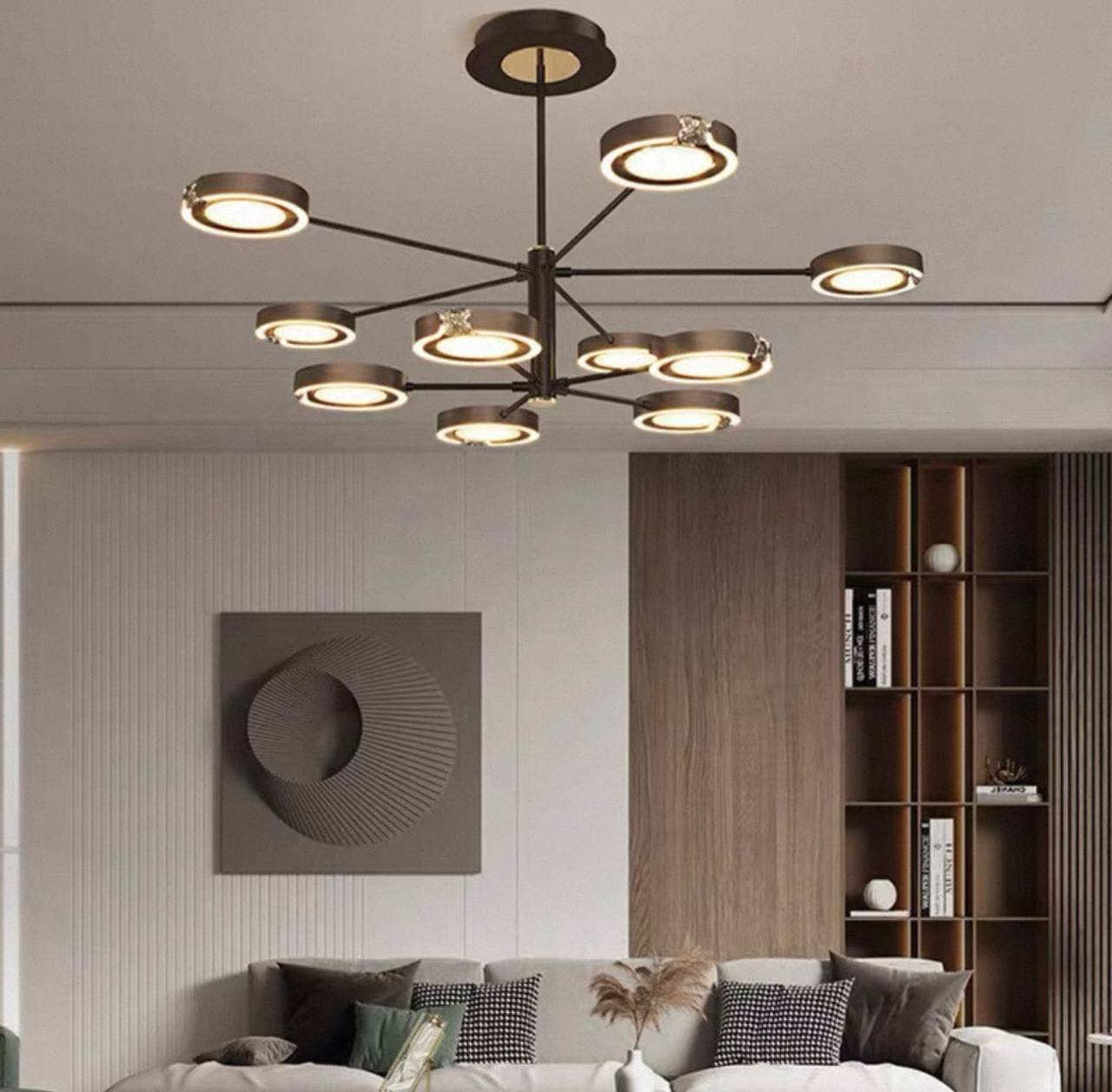 Люстра FIONA — воплощение утонченной элегантности и современного минимализма для вашего интерьера. Строгий черный металлический каркас с деликатными золотыми акцентами придает изделию благородный и стильный вид, который станет изюминкой гостиной, кабинета или офиса. Ширина 100 см и высота 54 см позволяют гармонично заполнить пространство площади 15–20 м², создавая мягкое, но при этом достаточно яркое светодиодное освещение. Основа люстры выполнена из прочного металла, а плафоны из ПММА обеспечивают равномерное распределение света, создавая комфортную атмосферу без бликов и теней. LED-лампы не только экономичны и долговечны, но и дарят тёплое, приятное освещение, которое не утомляет глаза на протяжении всего вечера. Потолочное крепление гарантирует надежную фиксацию и аккуратный внешний вид. Если вы цените дизайнерские решения с легким оттенком премиальности, современность и практичность — люстра FIONA станет отличным выбором для стильного и функционального освещения дома или офиса. Добавьте изысканный акцент вашему интерьеру уже сегодня! Если остались вопросы — напишите нам в чат. Мы всегда на связи и с удовольствием поможем разобраться во всех нюансах.