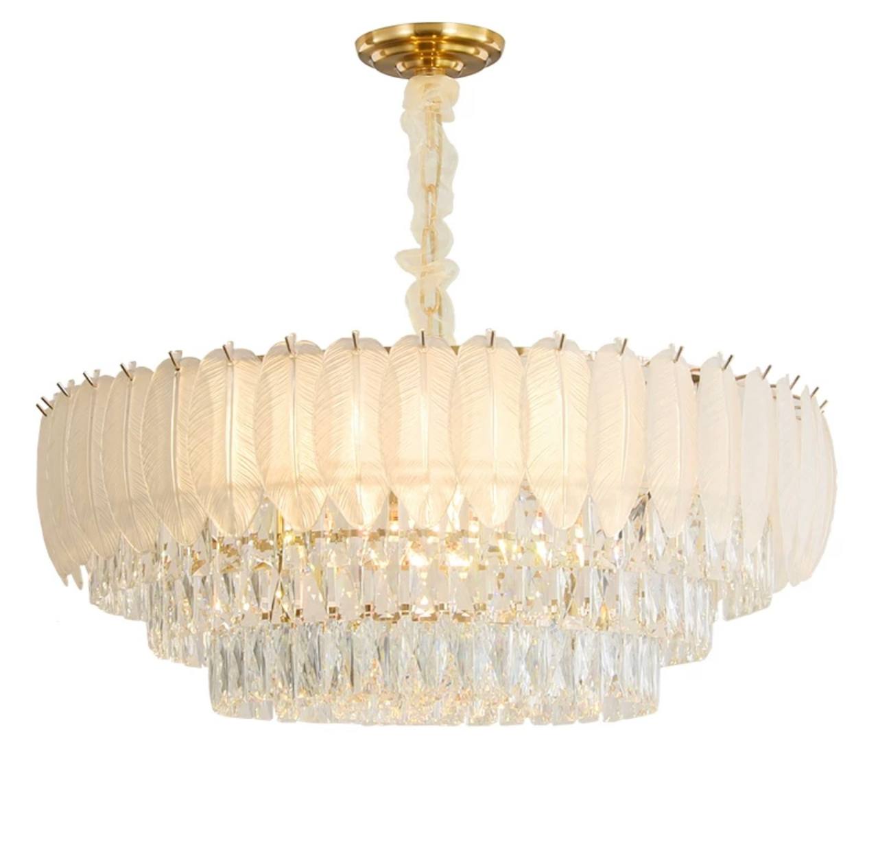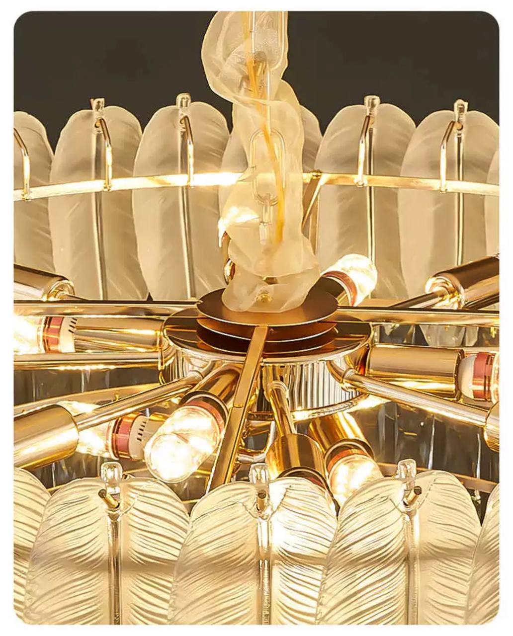 Люстра подвесная AKCICEC 60*35 белый, золото, стекло, металл, Е14.