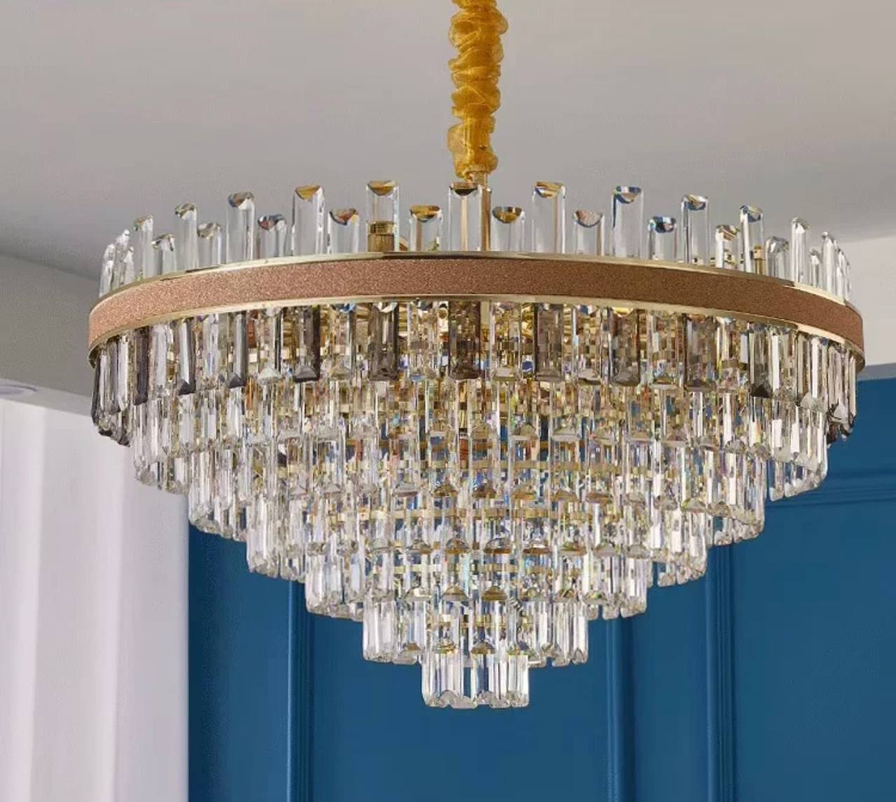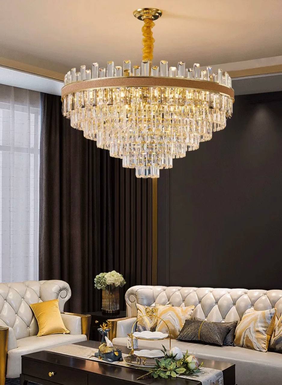 Люстра подвесная AKSES 60*36 золото, кристалл, металл, Е14.