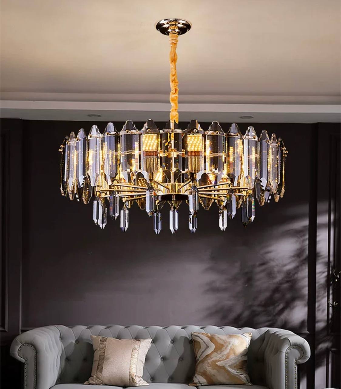 Люстра подвесная ALAGEYIK 40*32 дымчатый, кристалл, металл, Е14.