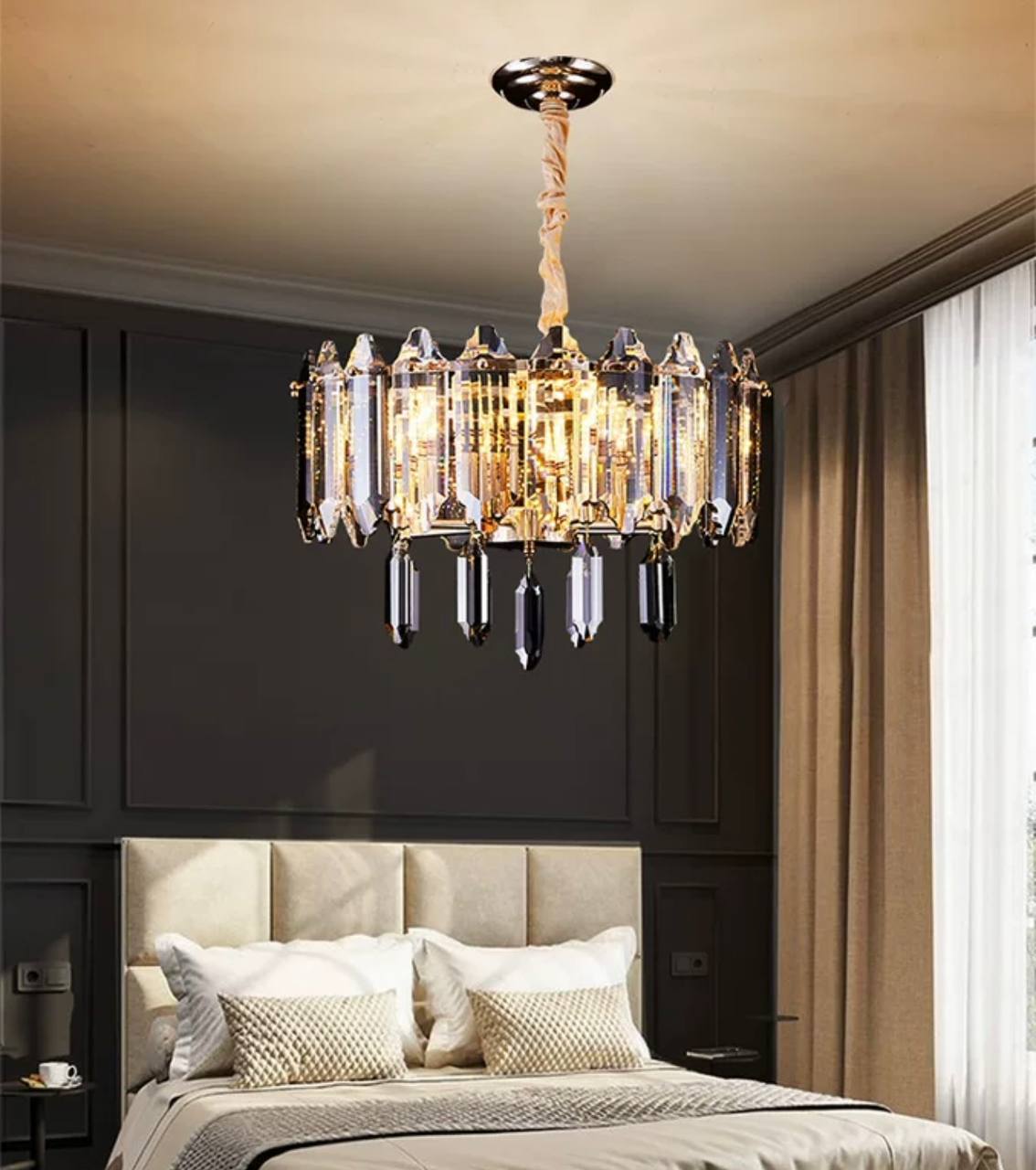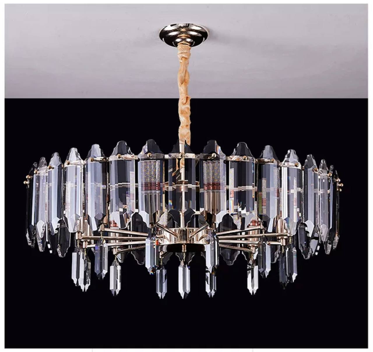 Люстра подвесная ALAGEYIK 60*32 дымчатый, кристалл, металл, Е14.