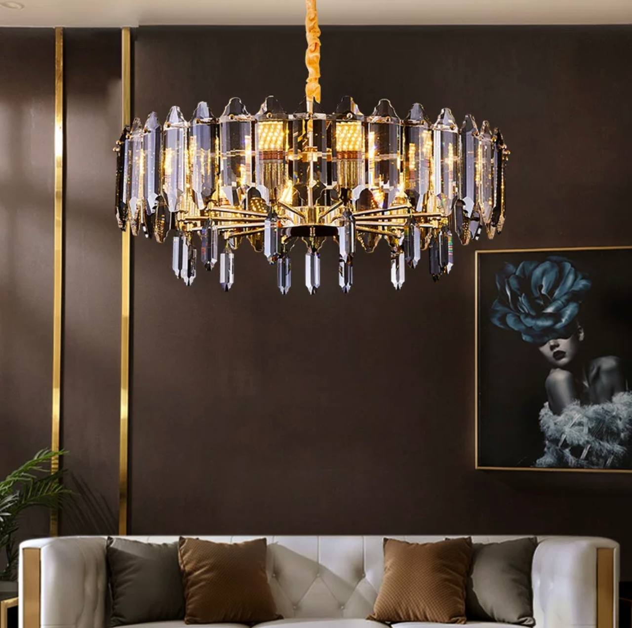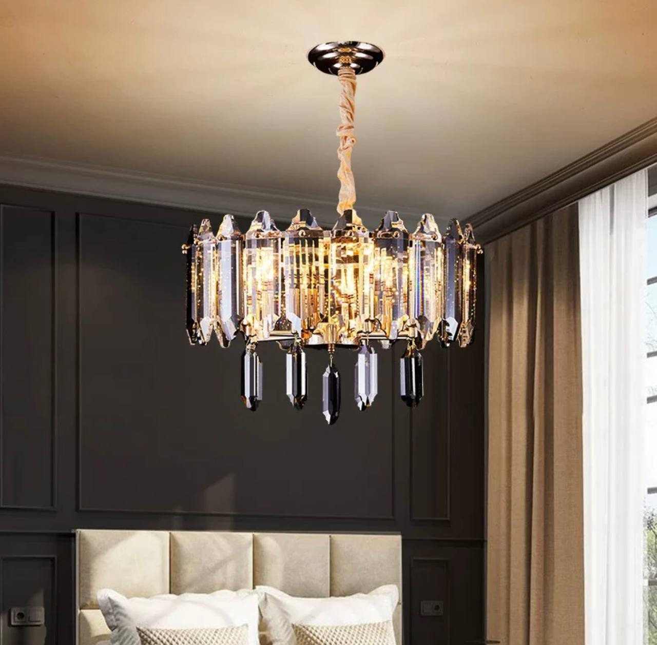Люстра подвесная ALAGEYIK 76*32 дымчатый, кристалл, металл, Е14.
