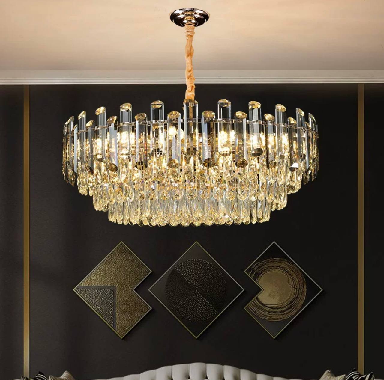 Люстра подвесная ALEV 60*30 золото, кристалл, металл, E14.