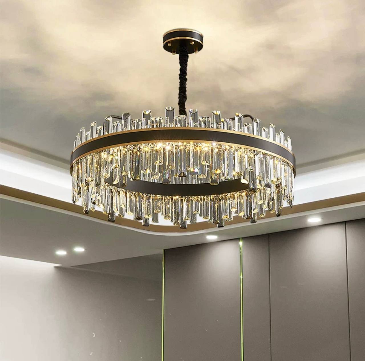Люстра подвесная BIRGEN 60*23 золото, черный, кристалл, металл, E14.