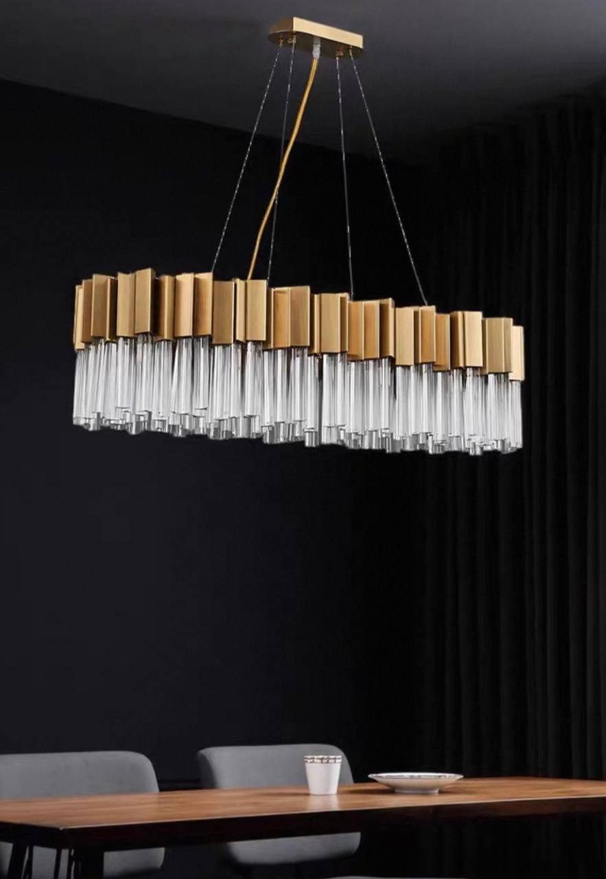 Люстра подвесная медная Evoloji, металл, хрусталь, трос 100 см, 90*40 см, G9