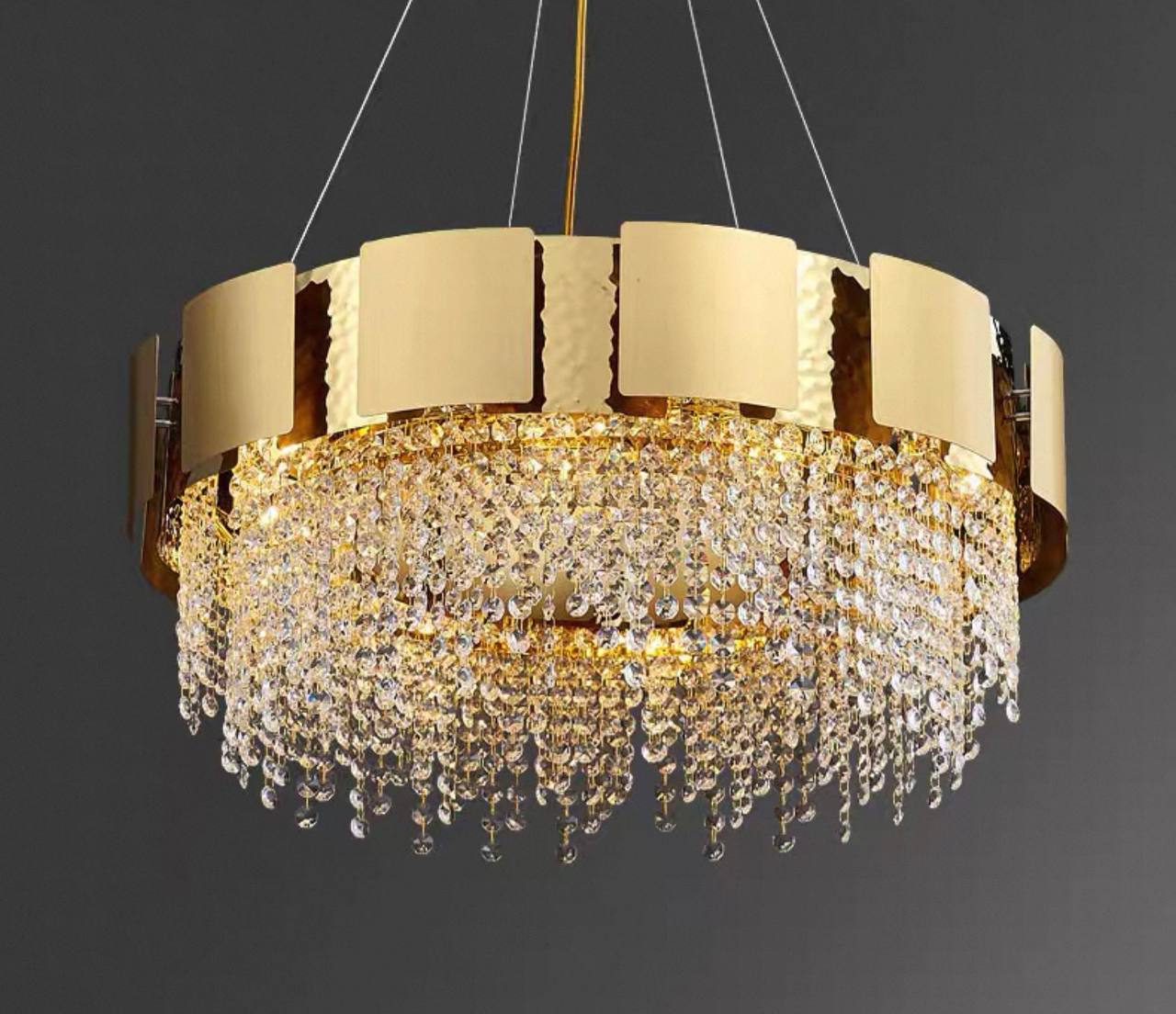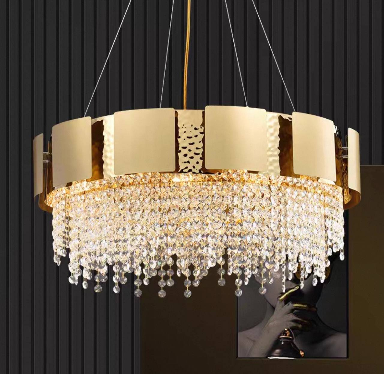 Люстра подвесная Eluvar — это гармоничное сочетание благородного металла и изысканного хрусталя, которое придаст вашему интерьеру утонченную элегантность. Золотое покрытие не только подчёркивает статус этой дизайнерской модели, но и создаёт тёплый, уютный свет, способный преобразить любую комнату — от гостиной до столовой. Классические формы размером 100×25 см и регулируемый трос длиной 50 см позволяют гармонично вписать люстру как в просторные, так и в более компактные помещения. Установка ламп с цоколем Е14 обеспечивает оптимальное освещение, которое дополняет эффект преломления хрусталя, создавая неповторимую игру света и теней. Eluvar — выбор тех, кто ценит функциональность в сочетании с эстетикой, стремится наполнить пространство интерьерной мебелью и освещением премиум-уровня без излишнего пафоса. Эта люстра подчёркнуто современна, но классика её форм и материалов остаётся вне времени. Добавьте в свой дом свет, который создаёт настроение и чарует взгляд. Закажите подвесную люстру Eluvar и ощутите магию золотого сияния уже сегодня. Если остались вопросы — напишите нам в чат. Мы всегда на связи и с удовольствием поможем разобраться во всех нюансах.