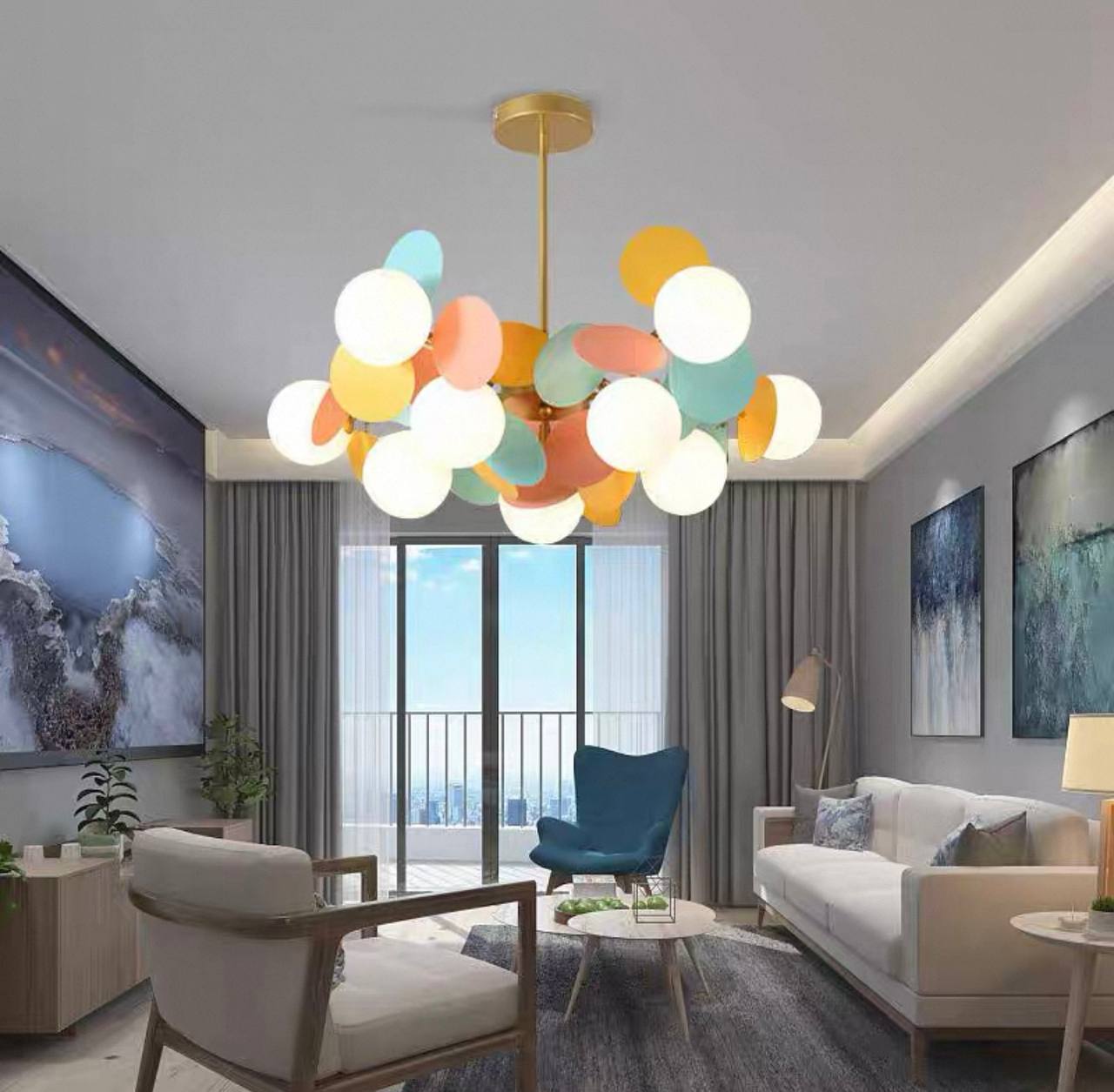 Люстра подвесная, золотисто-песочный, цветной, ПММА, CHUBI 75*30, металл, G9
