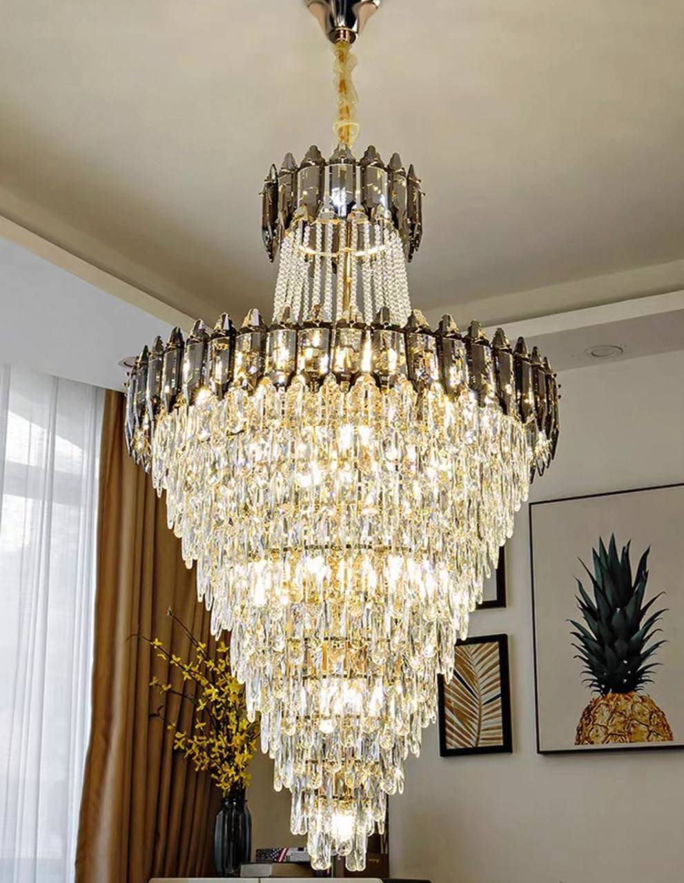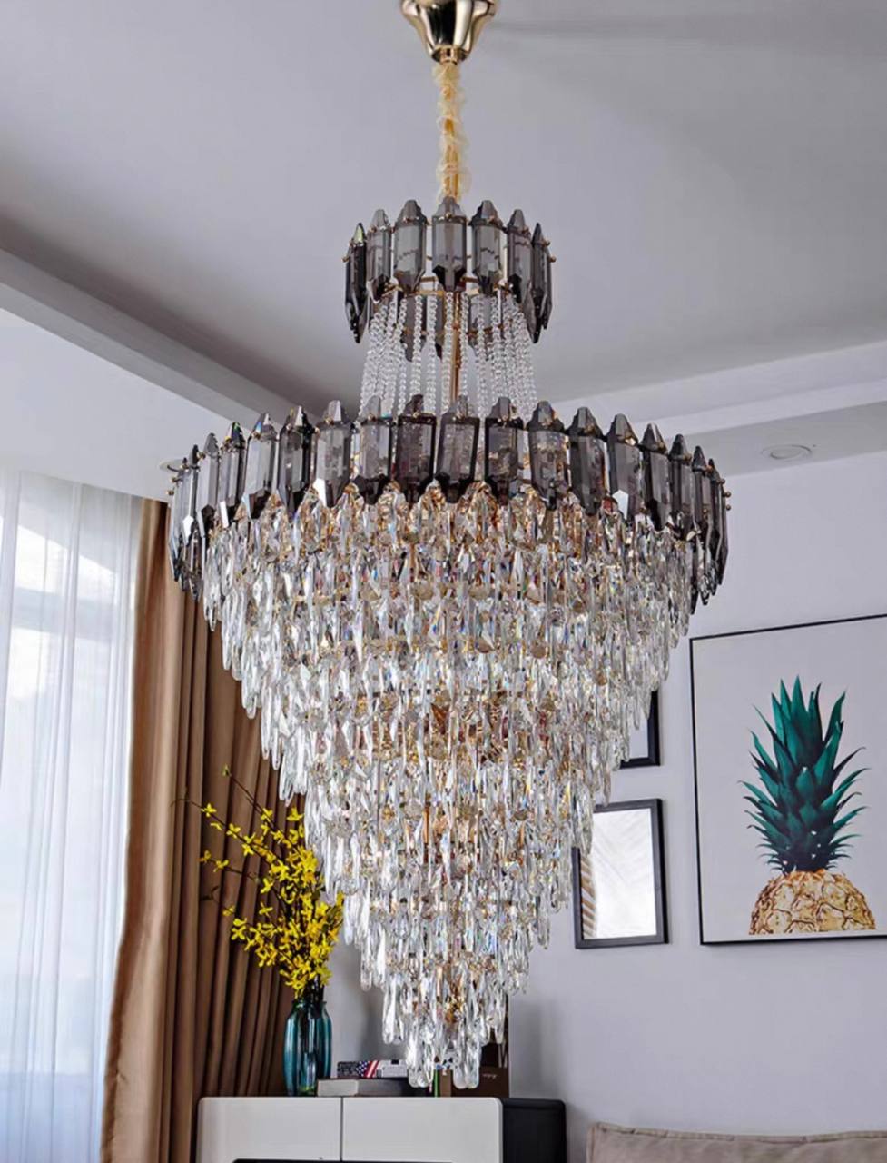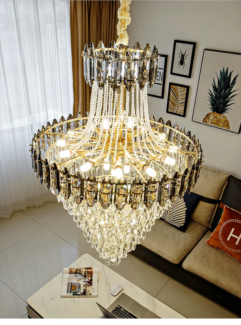 Люстра подвесная, золото, дымчатый, кристалл, DARK WOLF 120*200 металл, E14.