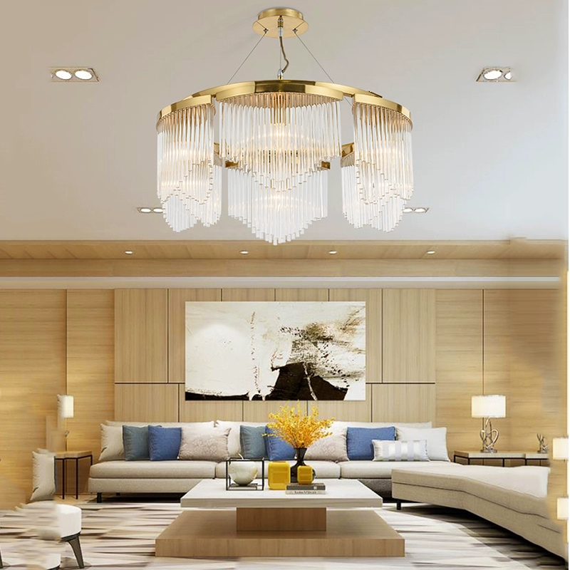 Люстра подвесная, золото, хрусталь, LATESHA 75*25, металл, E14.