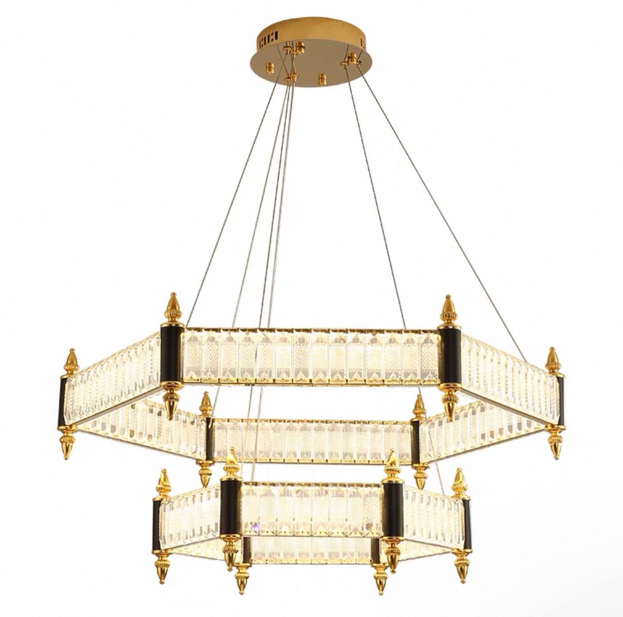 Люстра подвесная, золото, кристалл, ARON 80*45, металл, LED.