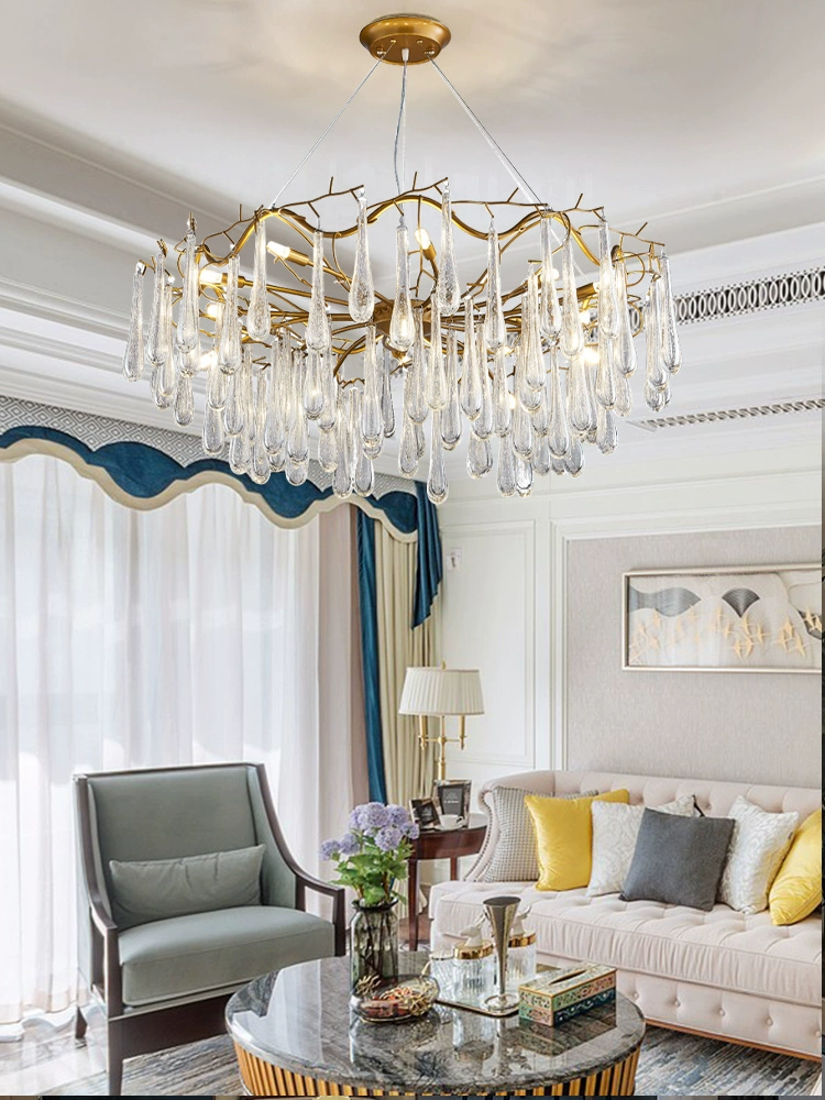 Люстра подвесная, золото, кристалл, KAROLYN 100*40, металл, G9.