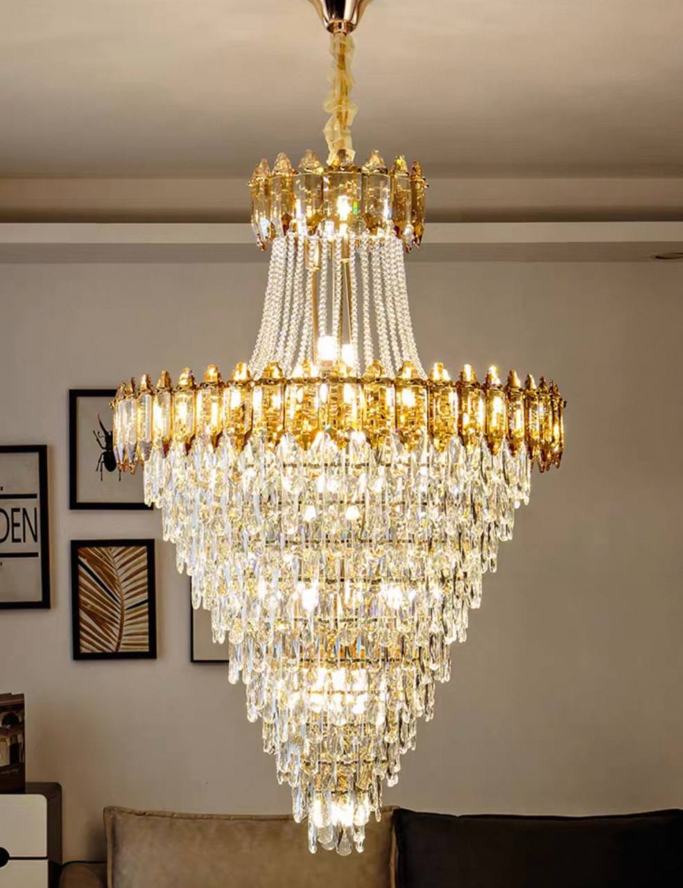 Люстра подвесная, золото, кристалл, WOLF 150*260 металл, E14.