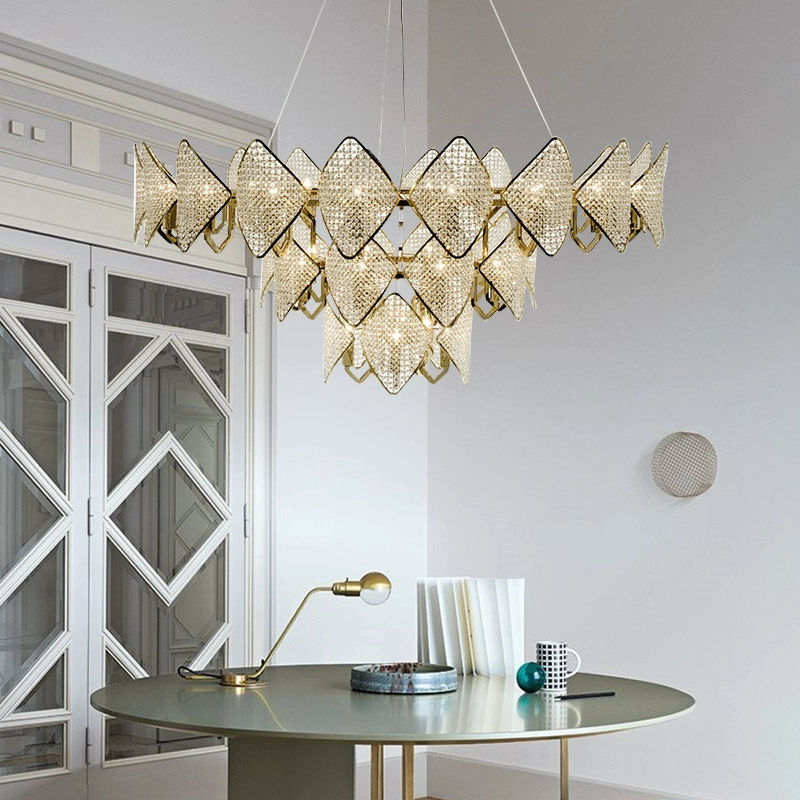 Люстра подвесная, золотой, бусины, ESTER 100*60*40, металл, G4.