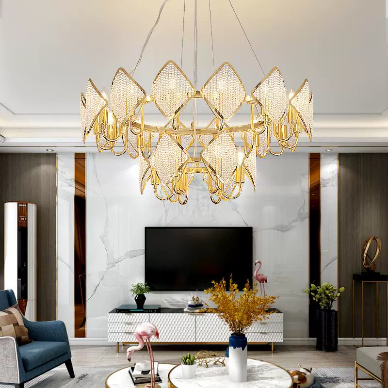 Люстра подвесная, золотой, бусины, ESTER 80*60, металл, G4.
