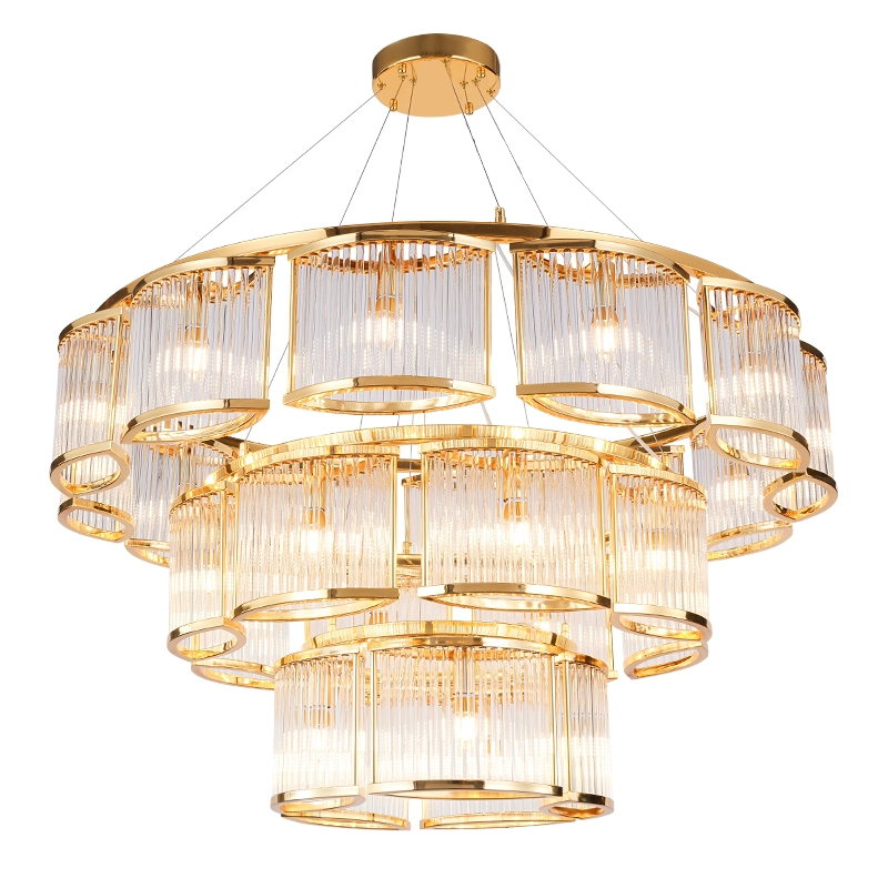 Люстра подвесная, золотой, стекло, AYDAN 40+70+100, металл, E14.