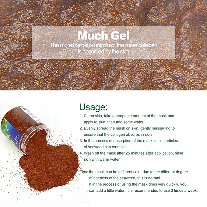 Маска для лица из семян водорослей В состав маски входят коллаген, витамины, аминокислоты и другие питательные компоненты. Семена морской капусты ламинарии как раз содержать все необходимое. Маска представляет из себя семена ламинарии россыпью и не содержит никаких вспомогательных ингредиентов. Семена просто заливаются водой. Действие продукта: 1. Мгновенный эффект - улучшение состояния лица уже после первого применения, а регулярное применение гарантирует стойкий эффект. 2. Восстановление кровоснабжения дермы, регенерация клеток 3. Очищение на глубоком уровне 4. Универсальность. Одинаковый эффект в независимости от пола, возраста и типа кожи. 5. Выравнивание цвета лица, осветление пигмента, отбеливание Метод использования: залить две ложки семян теплой кипяченой водой (1 к 3), перемешать до образования вязкой массы. Нанести на чистое лицо и шею, избегая область вокруг глаз и кожу губ. После 30 минут маску можно смыть водой. Для наибольшего эффекта можно повторять процедуру раз в 2-3 дня. Хранить в сухом, прохладном месте, плотно закрывать крышку с семенами. ООО «Европейская косметика», г. Гуанчжоу Адрес: г. Гуанчжоу, Байюньский район, пригород Жэньхэ, Деревня Дасян, Седьмой экономический кооператив (девятое деление), улица Бэй, здание № 2. Лицензия на производство косметики: Провинция Гуандун, косметика 20160694 Действующий стандарт: GB/T20680 Номер партии и срок годности продукции: указан на упаковке Произведено: г. Гуанчжоу, Китай.