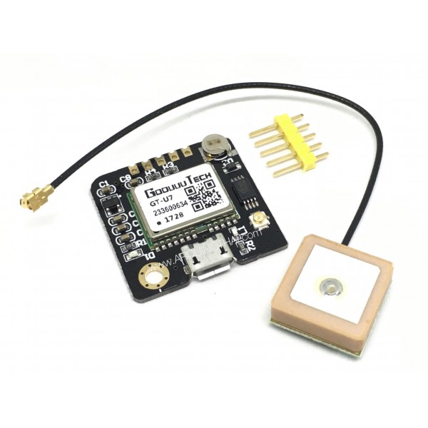 GPS-модуль NEO-6M - это эффективный комплектный GPS-приемник со встроенной керамической антенной 25 x 25 x 4 мм, которая обеспечивает мощные возможности поиска по спутнику. С помощью индикаторов питания и сигнала вы можете отслеживать состояние модуля. Благодаря резервной батарее данных модуль может сохранять данные при случайном отключении основного питания. Его 3-мм монтажные отверстия могут обеспечить легкую сборку на вашем самолете, который, таким образом, может стабильно летать в фиксированном положении, автоматически возвращаться в исходное положение, автоматически летать по маршрутным точкам и т. д Модуль GT-U7 имеет высокую чувствительность, низкое энергопотребление, миниатюризацию, высокую чувствительность отслеживания значительно расширил зону охвата, в общем модуле приемника GPS не может найти место, такое как узкое городское небо, густая среда джунглей, GT-U7 может высокая точность позиционирования. Модуль имеет высокую чувствительность, небольшой статический дрейф, низкое энергопотребление и малую громкость. Отправьте 51 однокристальную подпрограмму Arduino STM32 , с интерфейсом USB вы можете напрямую использовать кабель для передачи данных мобильного телефона, чтобы увидеть эффект позиционирования на компьютере. USB, напрямую подключенный к компьютеру, то есть с функцией последовательного порта главного компьютера, без необходимости подключения к другим последовательным модулям с интерфейсом IPX, отправляет активную антенну интерфейса IPX .