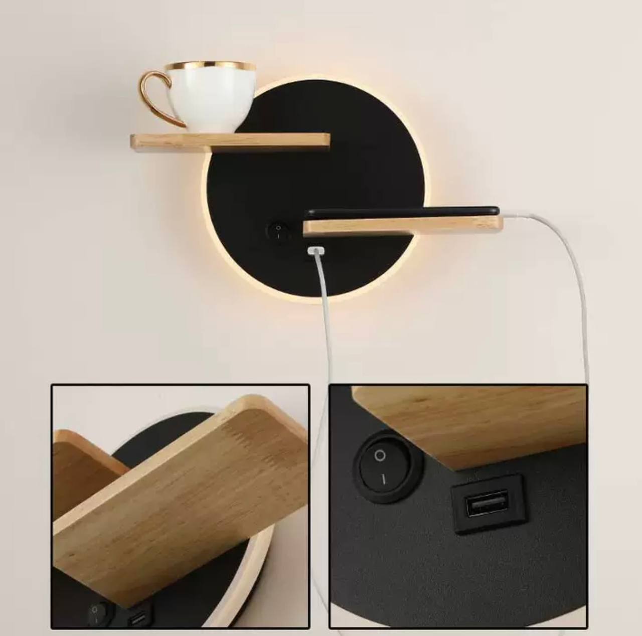 Настенный светильник, Бра, GABE 30*19, черный, дерево, металл, LED.