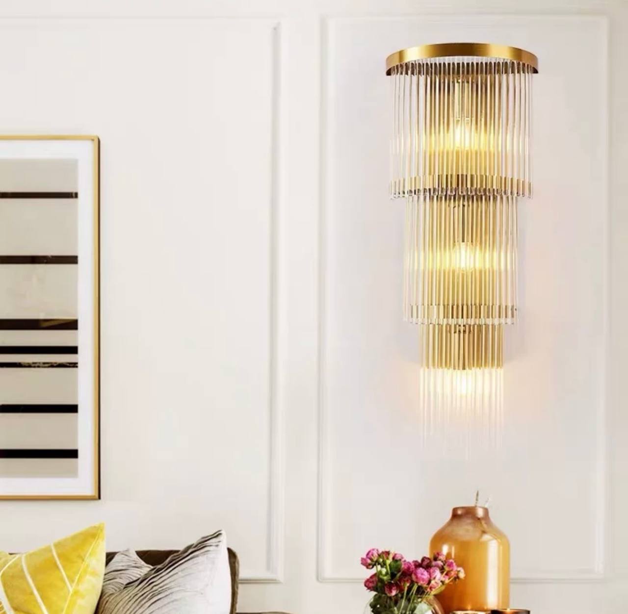Настенный светильник JIMMY – это стильное решение для вашего интерьера, которое гармонично дополнит любой дизайн. С его помощью вы сможете создать атмосферу уюта и комфорта в вашем доме или офисе. Изготавливаясь из качественного металла, этот бра не только привлекает взгляд своим шикарным золотым покрытием, но и отличается высокой прочностью и долговечностью. Имея размеры 25 на 63 см, светильник JIMMY идеально подходит для размещения в коридоре, гостиной или спальне. Его утонченный и элегантный дизайн станет ярким акцентом вашего интерьера, подчеркивая стиль и индивидуальность пространства. Благодаря цоколю Е14, вы легко сможете подобрать подходящую лампу, которая обеспечит необходимое освещение и создаст идеальную атмосферу в помещении. Бра выделяется простотой установки и удобством в эксплуатации. Его можно разместить над картиной, диваном или в любом другом месте, где требуется дополнительное освещение. С этим настенным светильником вы можете смело экспериментировать с освещением, подбирая различные лампы для создания нужного вам настроения. Настенный светильник JIMMY – это сочетание современного дизайна и функциональности, которое не оставит равнодушными любителей стиля. Добавьте этот элемент к вашему интерьеру и наслаждайтесь его элегантностью и практичностью.