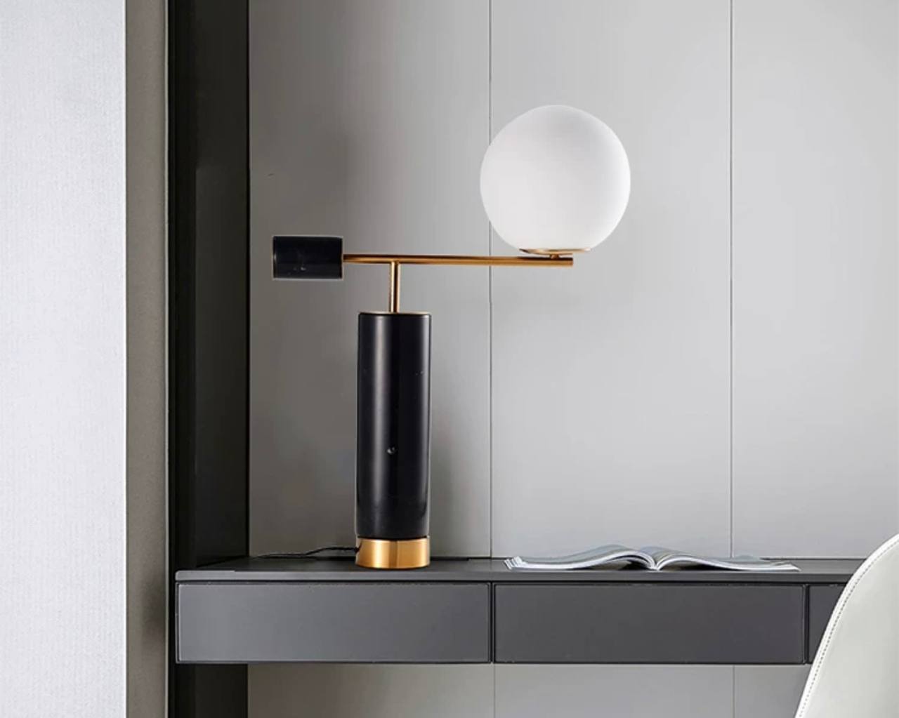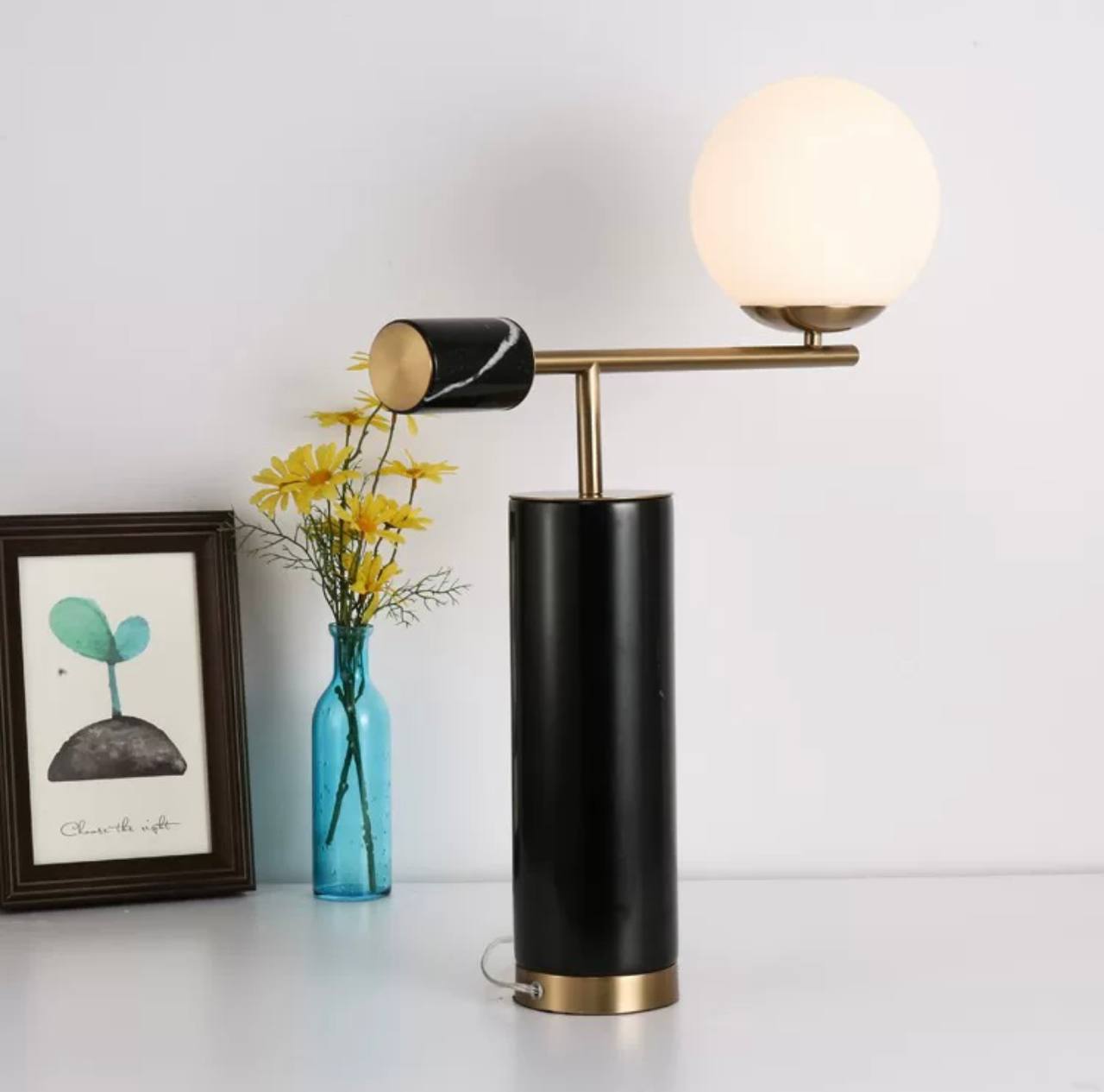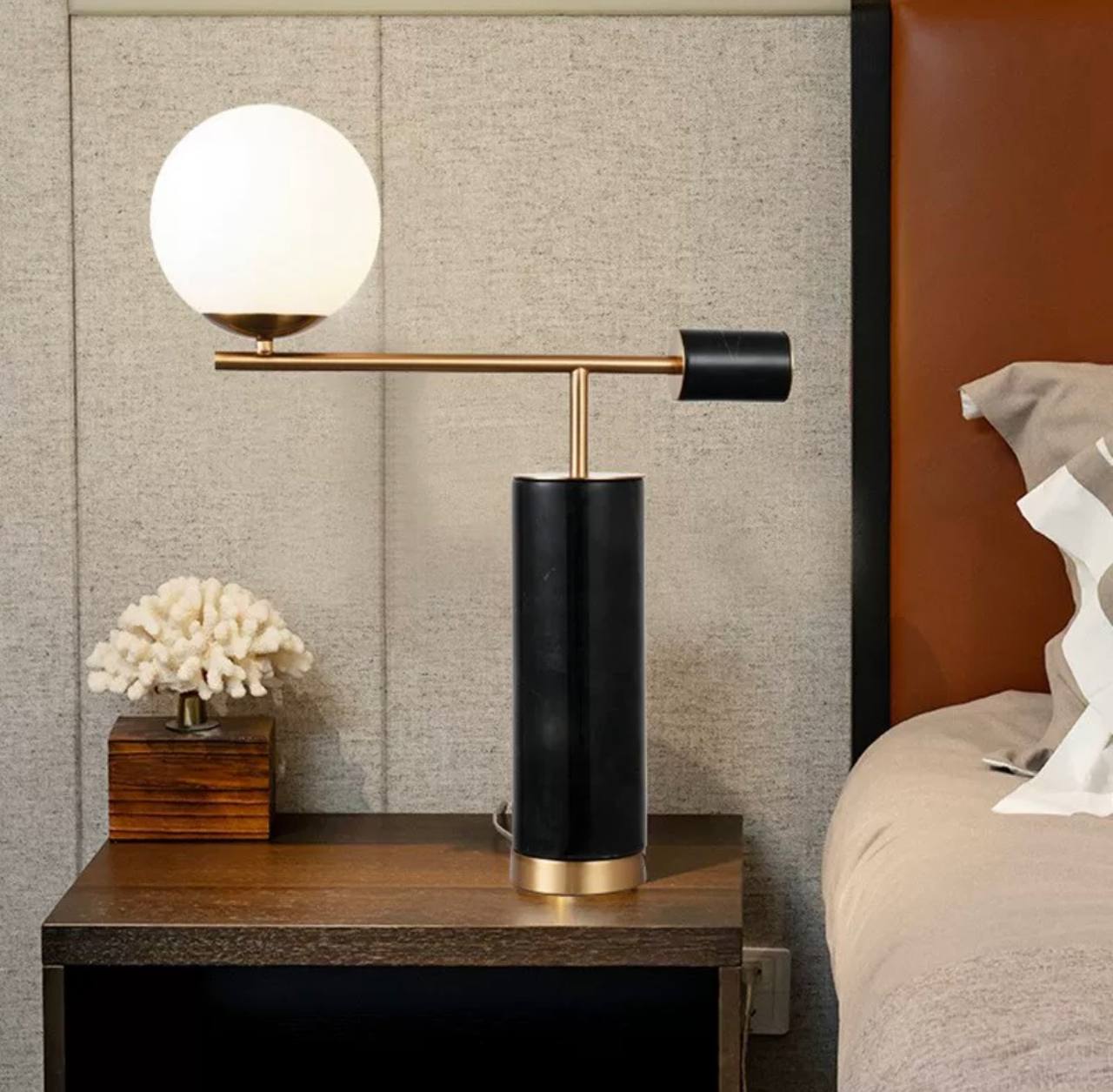 Настольная лампа PASCAL 50*64, черный, металл, мрамор.