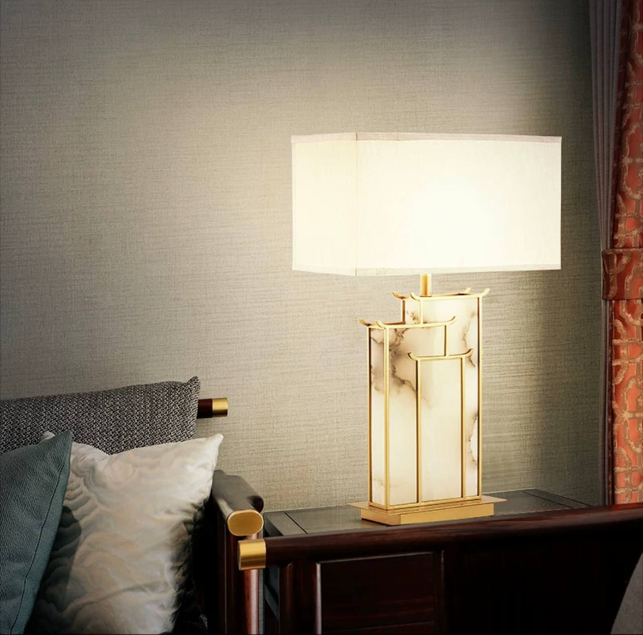 Настольная лампа TRISS 40*68, античная бронза, мрамор, металл.