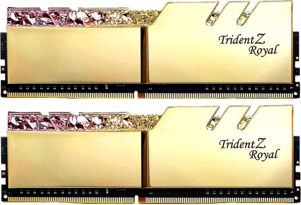 Trident Z Royal является последним дополнением к флагманскому семейству Trident Z и имеет дизайн в виде короны. Кристаллическая световая панель, тщательно разработанная для отображения нужного количества преломления света, рассеивает цвета RGB на великолепном дисплее со светодиодным освещением. Отражая дизайн световой панели высокого класса, полированные алюминиевые теплоотводчики золотого или серебряного цветов охлаждают модули памяти в отмеченном наградами классическом дизайне Trident Z tri-fin. Совместимость платформы Независимо от платформ Intel или AMD, каждый комплект памяти Trident Z Royal протестирован на совместимость и надежность, поэтому вы можете создать по-настоящему индивидуальный ПК с широким спектром материнских плат. Роскошные алюминиевые теплоотводчики Сохраняйте память в прохладном состоянии благодаря твердотельным алюминиевым теплоотводчикам с гальваническим покрытием, покрытым блестящим золотом или серебром.