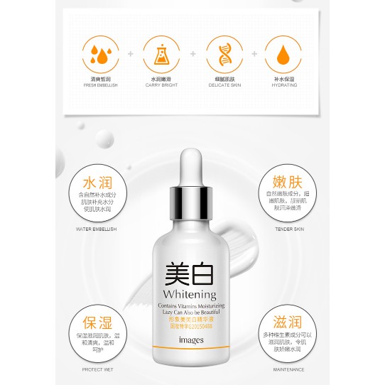 Отбеливающая сыворотка для лица Whitening Serum Сыворотка содержит большой запас витаминов и кислот и направлена на увлажнение, питание и омоложение кожи лица. Сыворотка содкржит большое количество гиалуроновой кислоты, восстанавливающей качественные характеристики эпидермиса. Действие сыворотки решает 4 основные возрастные проблемы кожи: 1. Борется с морщинами обновляя коллаген в коже; 2. Предотвращает птоз. Оказывает лифтинг эффект. 3. Увлажняет обезвоженную кожу. 4. Устраняет признаки усталости на лице: Метод использования: нанесите несколько капель средства на лицо, шею и зону декольте. "Вбейте" сыворотку в кожу кончиками пальцев. После того, как сыворотка впитается нанесите увлажняющий крем для создания защитной пленки на поверхности кожи. Хранить в темном, прохладном месте. Не использовать после истечния срока годности.