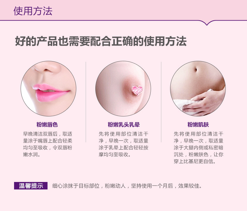 Отбеливающий гель для лица и тела Nenhong Pink Privates Гель Nenhong Pink Privates предназначен для осветления участков тела и лица. В частности, он может использоваться для отбеливания интимных мест, сосков и губ. Средство не содержит вредных веществ, таких как ртуть и стероиды и не вызывает раздражения кожи. После применения крема, отбеленный участок кожи стоит поберечь от воздействия солнца и использовать солнцезащитный крем с максимальной защитой. Метод использования: крем наносится на чистую и сухую кожу в незначительном количестве. Можно наносить крем два раза в день для наибольшего эффекта. Эффект достигается после восьми недель регулярного использования. Состав: water, glycerin, mineral oil, propylene glycol butanediol, stearyl-21, polydimethylsiloxane, stearyl alcohol, nicotinamide, cherry blossom (PRUNUS SPECIOSA) flower extract, carbomer, yellow Raw gum, a-arbutin, ethanolamine, methylparaben, propylparaben, imidazolidinyl urea, flavor. Хранить в прохладном, темном месте. Не использовать после истечения срока годности. ООО «Европейская косметика», г. Гуанчжоу Адрес: г. Гуанчжоу, Байюньский район, пригород Жэньхэ, Деревня Дасян, Седьмой экономический кооператив (девятое деление), улица Бэй, здание № 2. Лицензия на производство косметики: Провинция Гуандун, косметика 20170506 Действующий стандарт: GB/T 29665 Номер партии и срок годности продукции: указан на упаковке Произведено: г. Гуанчжоу, Китай.