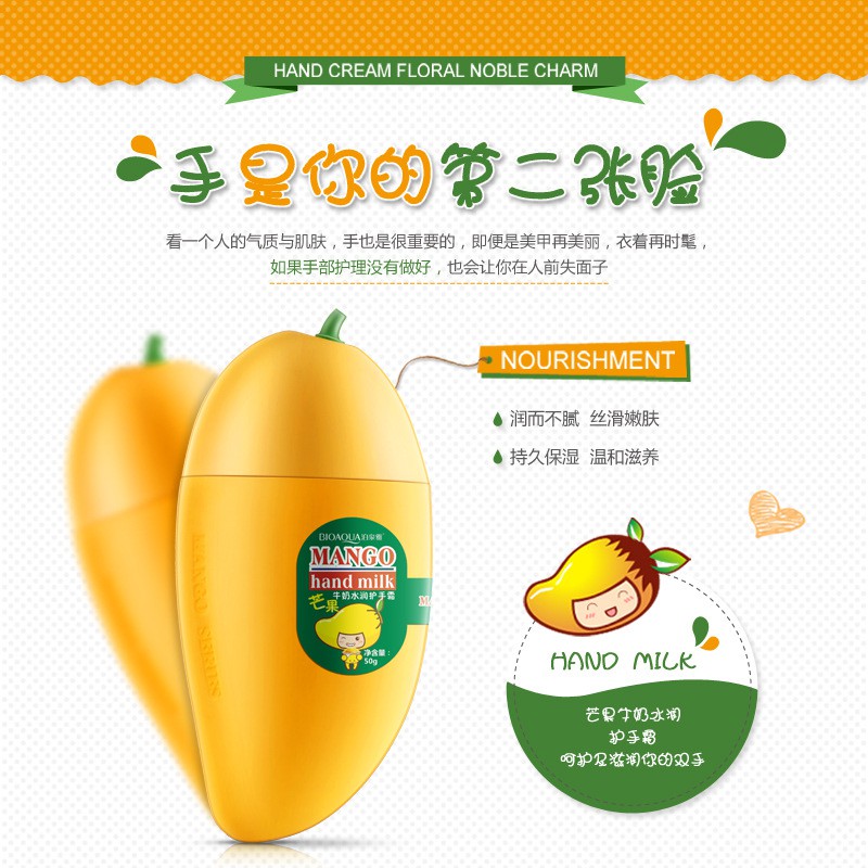 Питательный крем для рук с вытяжкой из манго Питательный крем для рук с ароматом манго – один из самых популярных продуктов для ухода за кожей рук от Bioaqua. Крем имеет структуру косметического молочка, не оставляет после себе неприятных ощущений липкости и жирности. Кожа становится более ухоженной и эластичной. Кожа рук, под действие крема настолько преображается, что ее красота станет заметна даже окружающим. Даже в самый неблагоприятный сезон ваши ручки будет радовать вас ухоженным видом, без признаков сухости, трещинок и покраснений. Питательный крем для рук с вытяжкой из манго продлит молодость ваших рук. Метод использования: крем наносится на чистую, сухую кожу рук. После нанесения, вотрите крем в кожу рук до состояния полного впитывания. Незамедлительно прекратите использование в случае появления признаков аллергической реакции. Хранить в прохладном, темном месте. Не использовать после истечения срока годности. ООО «Европейская косметика», г. Гуанчжоу Адрес: г. Гуанчжоу, Байюньский район, пригород Жэньхэ, Деревня Дасян, Седьмой экономический кооператив (девятое деление), улица Бэй, здание № 2. Лицензия на производство косметики: Провинция Гуандун, косметика 20160694 Действующий стандарт: GB/T 29680 Номер партии и срок годности продукции: указан на упаковке Произведено: г. Гуанчжоу, Китай