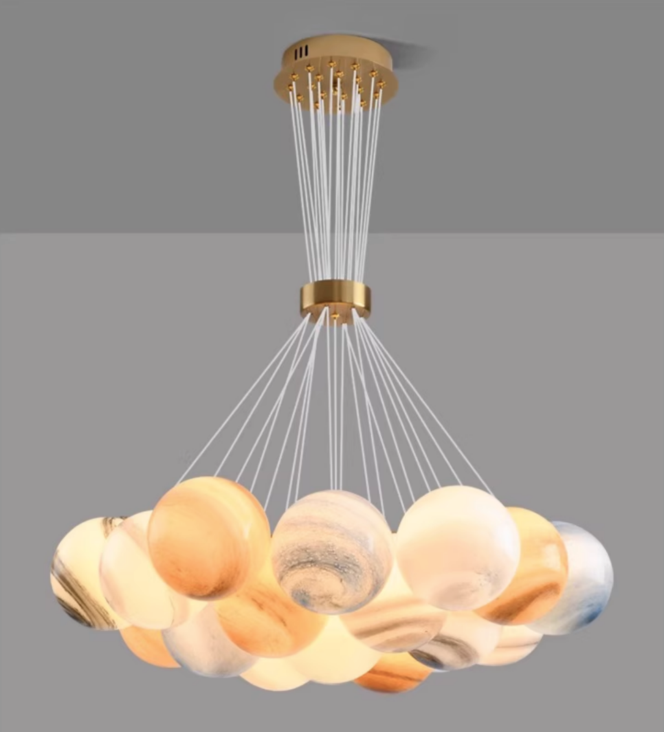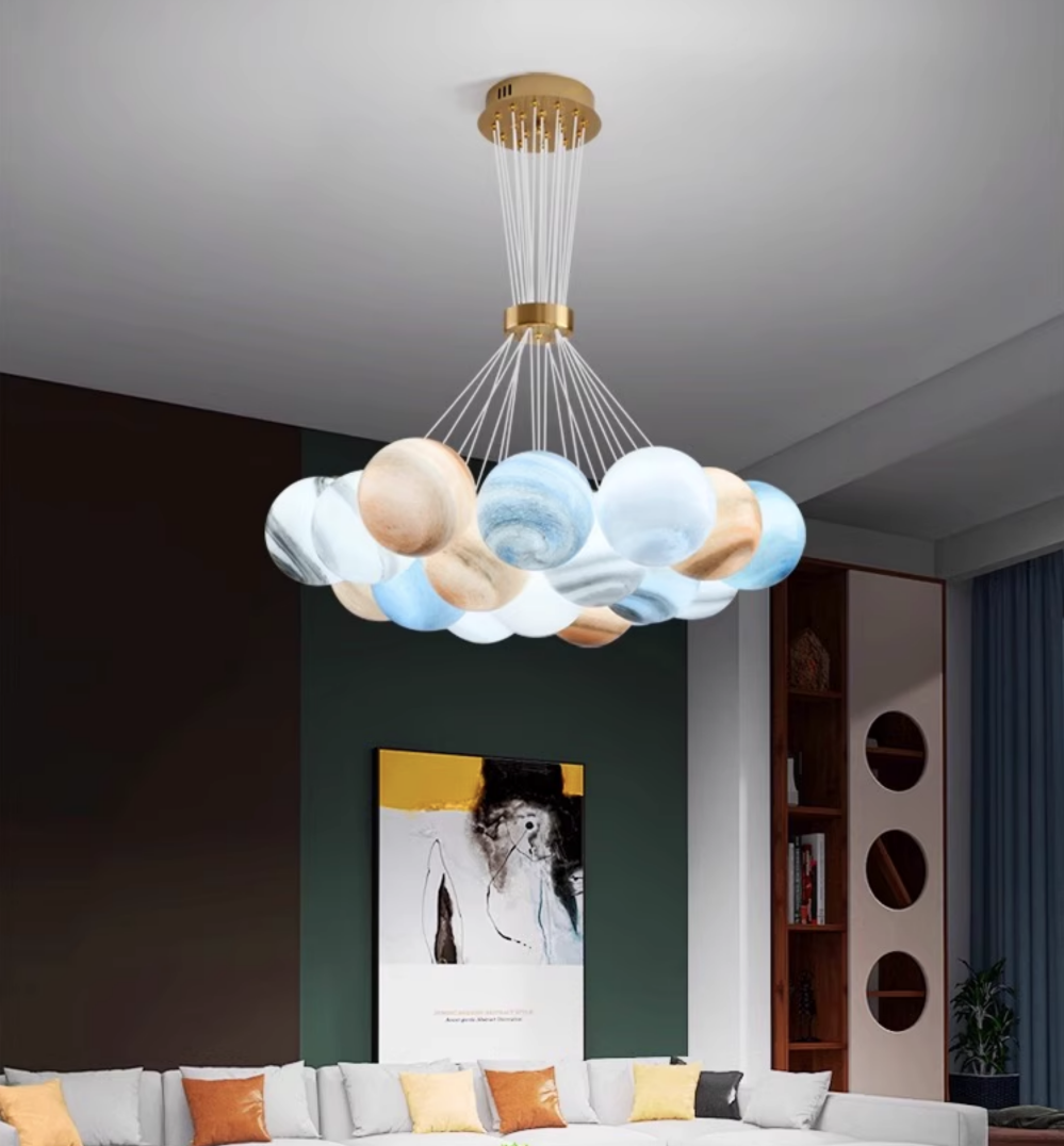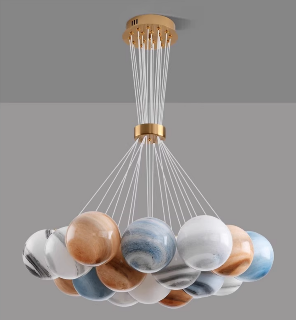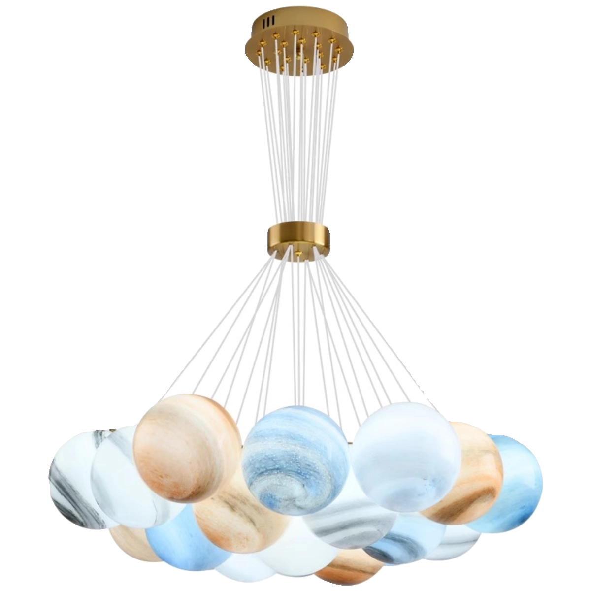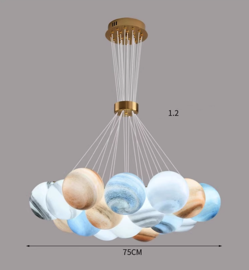 Добавьте в интерьер изысканную яркость с подвесным светильником Planet диаметром 75 см. Этот дизайнерский светильник с 19 разноцветными стеклянными плафонами создаёт эффект живой планетарной системы, наполняя пространство мягким, но насыщенным светом. Современные светодиодные лампы с цоколем G9 уже включены в комплект, что гарантирует лёгкость установки и сразу же готовое к использованию решение для вашего дома или офиса. Конструкция светильника предусматривает регулировку высоты троса до 120 см, позволяя оптимально вписать его в любой потолок. С его помощью вы сможете освещать площади от 15 до 25 квадратных метров, превращая обычную комнату в стильное и уютное пространство. Высококачественные материалы и фабричное производство из Гонконга подчёркивают надёжность и премиальный характер изделия. Planet — это не просто потолочный светильник, а живое украшение интерьера с гармонией цвета и формы, которое идеально дополнит современный стиль. Приобретите уникальный светильник уже сегодня и окунитесь в атмосферу комфортного и стильного освещения. Если остались вопросы — напишите нам в чат. Мы всегда на связи и с удовольствием поможем разобраться во всех нюансах.