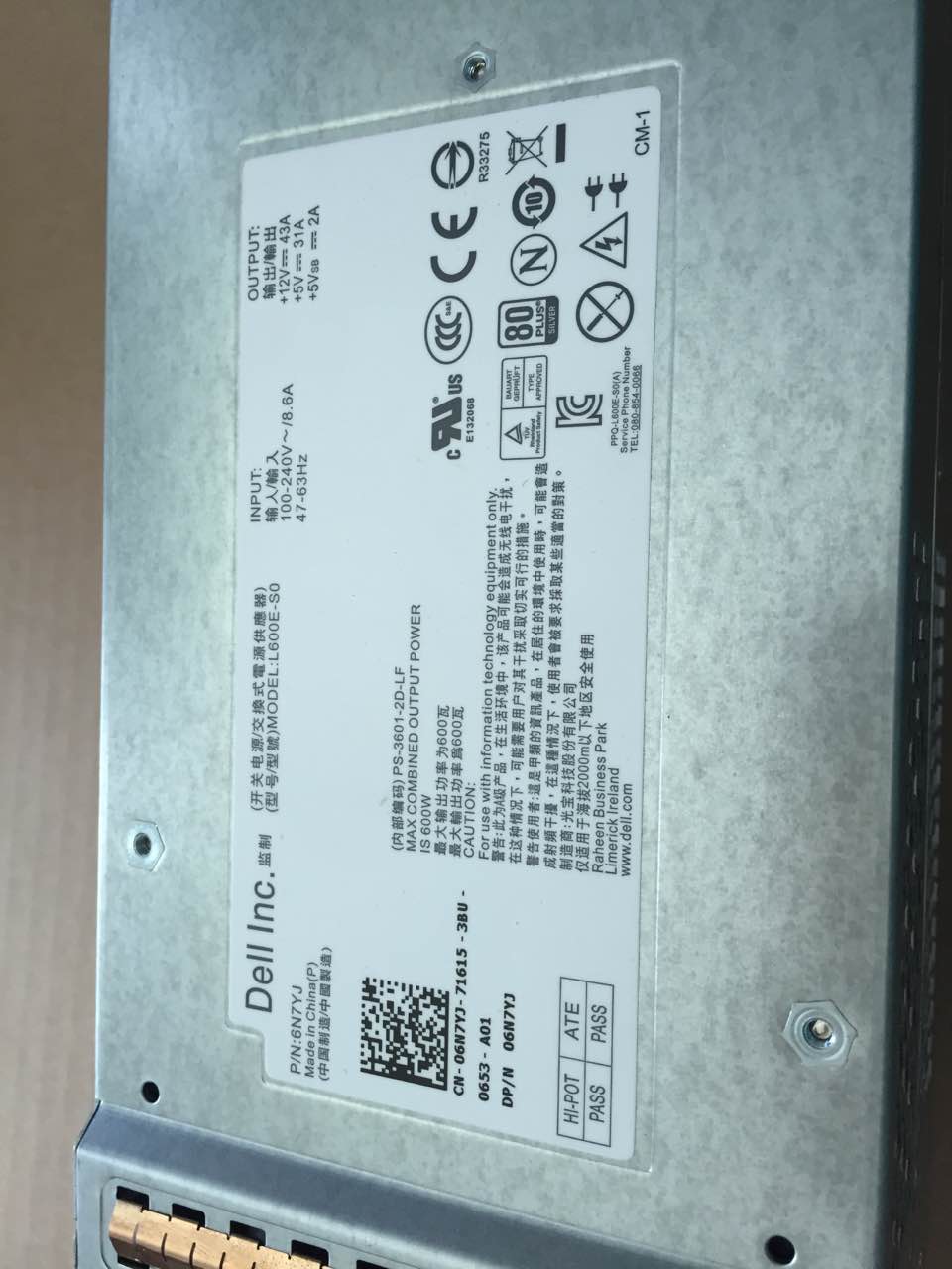 Серверный блок питания Dell 6N7YJ 600W Особенности: Совместимость: MD1200, MD1220, MD3200, MD3220, MD3400, MD3420, MD3600f, MD3620f, MD3800f, MD3820f Модель блока питания: HE600E-S0 Номер детали Dell: 6N7YJ