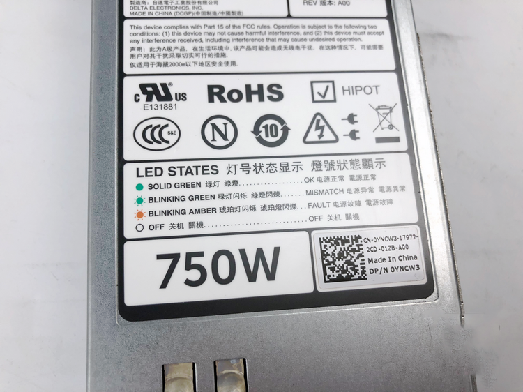 Серверный блок питания DELL R720 R620 750W YNCW3 Особенности: Модель: D750E-S3 №: 0YNCW3 0G6W6K 0TPJ2X 0V1YJ6 00XW8W Максимальный переменный ток: 10А ~ 5А Блок питания: 750 Вт Применимые модели: R530 / R630 / R730 / R730XD / T430 / T630/ R720 R620/