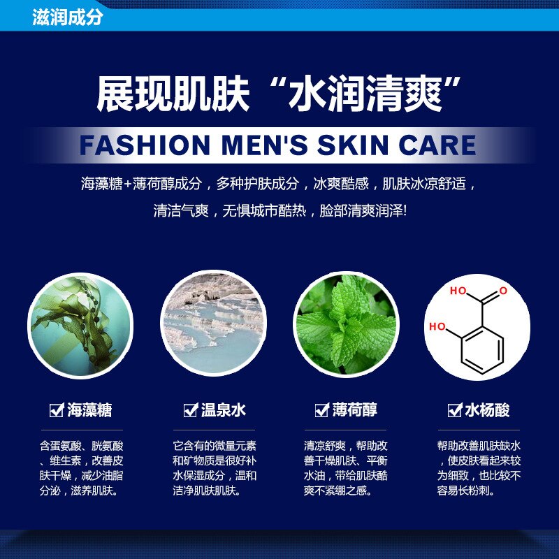 Тоник для лица Nice Men Expert Мужской тоник направлен на избавление кожи от повышенной жирности и расширенных пор. Сродство увлажняет кожу и выравнивает цвет лица. Полностью натуральный состав тоника позволяет использовать его даже на чувствительной коже. В состав входят: трегалоза, минеральная вода, ментол, салициловая кислота. Салициловая кислота позволяет убрать воспаления на коже, а ментол освежить кожу, наполнить ее энергией. Метод использования: тоник наносится два раза в день после умывания. Нанесите немного средства на чистые ладони и похлопывающими движениями распределите по лицу. Перед первым применением протестируйте средство на возможную индивидуальную непереносимость на небольшом участке кожи (за ухом). Не используйте после истечения срока годности. Хранить в прохладном темном месте. Беречь от детей. ООО «Европейская косметика», г. Гуанчжоу Адрес: г. Гуанчжоу, Байюньский район, пригород Жэньхэ, Деревня Дасян, Седьмой экономический кооператив (девятое деление), улица Бэй, здание № 2. Лицензия на производство косметики: Провинция Гуандун, косметика 20160694 Действующий стандарт: GB/T20680 Номер партии и срок годности продукции: указан на упаковке Произведено: г. Гуанчжоу, Китай.