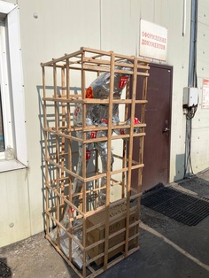 Нет вообще, даже коробка с обрешеткой в идеальном состоянии