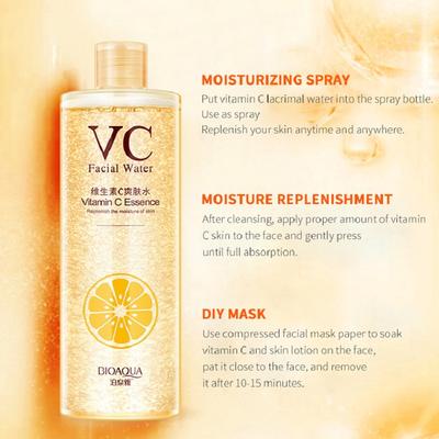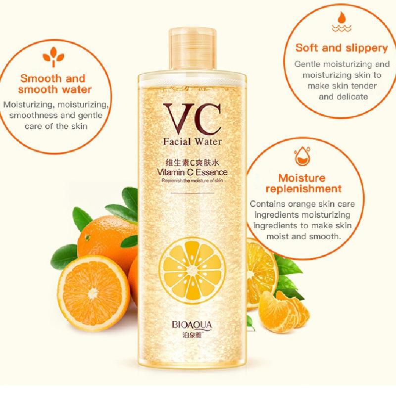 Цитрусовый тонер для лица Bioaqua VC Цитрусовый тонер от VC предназначена для ухода за кожей сразу после умывания. Он моментально питает влагой кожу, охлаждает и наполняет сиянием (при неоднократном использованием). Кроме того, тонер от Bioaqua оказывает легкое отшелушивающее действие, очищая кожу лица от ороговевших клеток кожи. Кожа становится более нежной и восприимчивой для других этапов ухода за ней. В составе тонера VC входит экстракт апельсина, в котором содержится большое количество так необходимого нам витамина С. Тонер увлажняет, успокаивает и нейтрализует воспаления. Не менее значимыми являются способности тонера повышать упругость кожи, осветлять ее, стимулировать выработку коллагена. В свою очередь, коллаген запускает процесс омоложения клеток, повышает эластичность, снижает пигментацию ( в том числе полученную вследствие длительного пребывания на солнце). Метод применения: протрите чистую кожу лица ватным диском, пропитанным тонером. Избегайте попадания в глаза. После использования тонера можно наносить увлажняющий крем и сыворотку. Хранение: хранить в темном, не доступном для детей месте. ООО «Европейская косметика», г. Гуанчжоу Адрес: г. Гуанчжоу, Байюньский район, пригород Жэньхэ, Деревня Дасян, Седьмой экономический кооператив (девятое деление), улица Бэй, здание № 2. Лицензия на производство косметики: Провинция Гуандун, косметика 20160694 Действующий стандарт: GB/T 1857 Номер партии и срок годности продукции: указан на упаковке Произведено: г. Гуанчжоу, Китай.