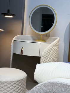 Туалетный столик Light в молочном оттенке — идеальное сочетание утончённого американского стиля и современного минимализма. Изготовленный из массива дерева с деревянным основанием, он привносит в интерьер натуральность и тепло, делая пространство более уютным и светлым. Компактные размеры 60×60×73 см позволяют разместить этот элегантный столик даже в небольших спальнях или гардеробных, не загромождая пространство. В комплекте с удобным мягким пуфом и стильным зеркалом, туалетный столик Light превращает рутину макияжа в настоящий ритуал с комфортом и настроением. Один ящик тщательно продуман для хранения косметики и аксессуаров — порядок и функциональность здесь идут рука об руку с эстетикой. Легкая структура с одной ножкой придаёт модели современную лёгкость и визуальную воздушность, позволяя дополнить интерьер изящностью без излишней тяжеловесности. Этот туалетный столик станет выигрышным акцентом в вашем доме, подчеркнув вкус и внимание к деталям. Он поставляется в разобранном виде, что облегчает транспортировку и сборку. Выбирайте мебель, которая действительно вдохновляет — закажите туалетный столик Light и создайте зону красоты, достойную самых изысканных интерьеров. Если остались вопросы — напишите нам в чат. Мы всегда на связи и с удовольствием поможем разобраться во всех нюансах.